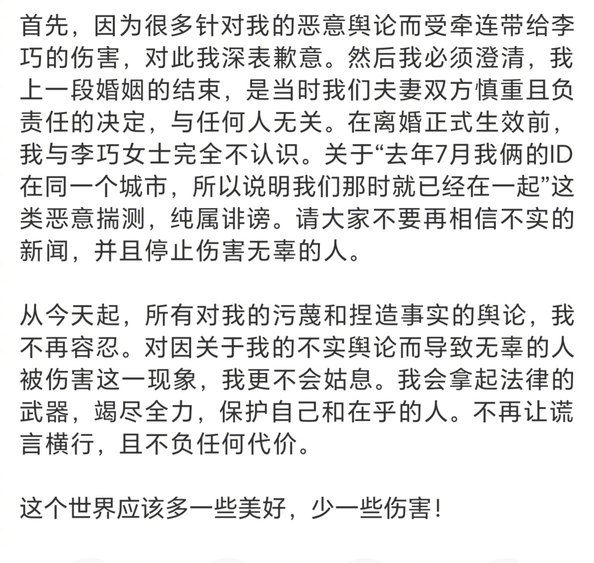 #汪峰682字长文#汪峰发682字长文承认恋情并讲述了与森林北相识相爱过程!表示自己会保护自己和在乎的人,不再让谎言横行,切不负任何代价!好刚!