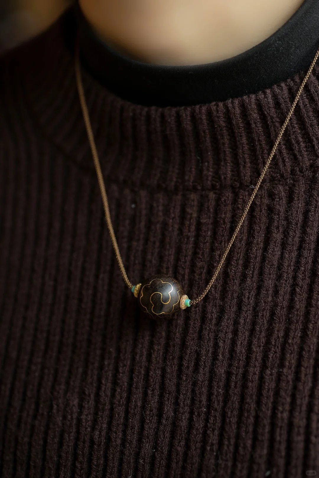 老惠安沉水级沉香,老料单珠项链 自然结香深邃厚重,蜜香甜韵,24k手工错金祥云纹,18 K金隔珠 项链配饰,婉约秀气。