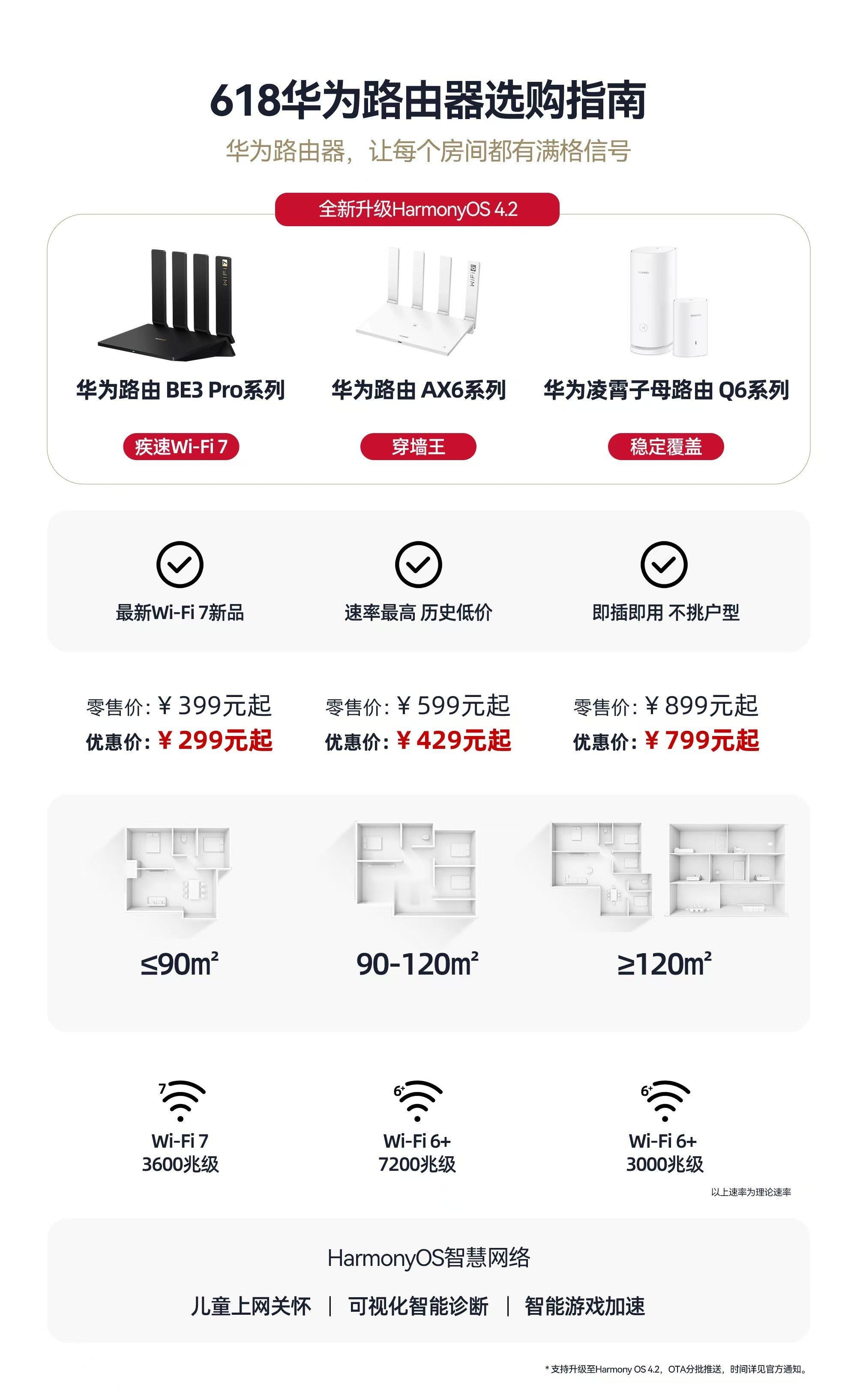 #华为路由器发货量超1亿台# 作为华为路由器的忠实拥趸,此消息令人振奋!工作室目前使用的华为凌霄子母路由 Q6,以其子母形态设计,轻松覆盖上下两层楼,实现全域无缝连接。家中的华为路由 AX3服役多年,性能依旧出色。然而,随着去年年底华为首款Wi-Fi 7路由器——华为路由 BE3 Pro的问世,搭载的MLO双频聚合技术,预示着家庭上网体验的全新升级。我已迫不及待要在618大促期间升级至这款新型路由器,享受极速网络。有同样换机需求的朋友们,不妨关注华为路由器。#不同户型怎么选路由器#,给你个清单,轻松挑选适合自家的华为路由器。