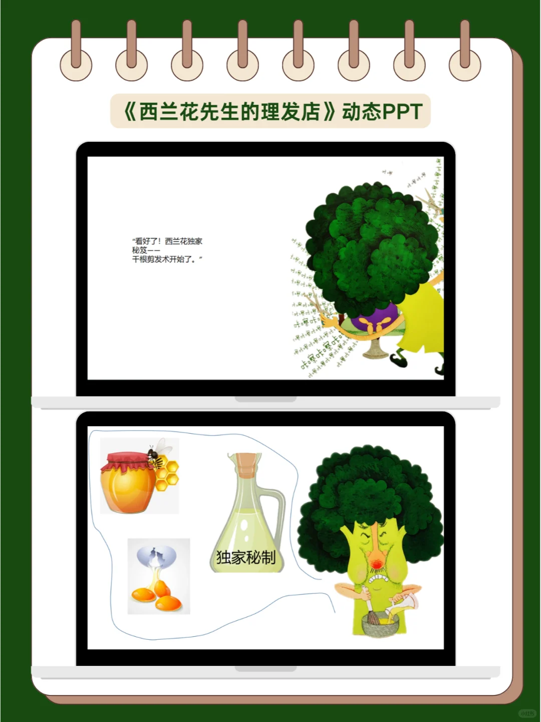 小班语言领域 绘本:《西兰花先生的理发店》 适合年龄:1.5~4岁 配套课件:教案+课程实录+动态PPT - 💫推荐理由: 茄子家族自古以来都是一个发型,茄子小弟却想换一换。对于西兰花先生的手艺,每一位顾客都赞不绝口!可是茄子小弟的头发太硬了,怎么剪都剪不动,西兰花先生怎么帮他实现换发型的愿望呢? - 💫打破常规思维,培养创新意识。推荐!幼儿必读~