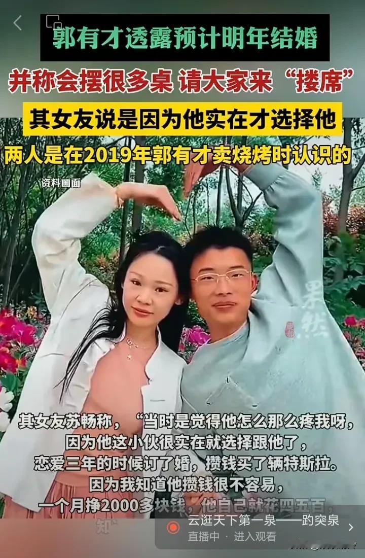 一直以为郭有才和苏畅已经结婚,原来还没有,记得苏畅母亲曾说过,“先成家后立业”。原来还没结婚,那是不是说明如果郭有才不红,苏畅母亲很可能就压根不会说这句话?除了郭有才爆红已经赚到钱了,到底还有什么是真的?
