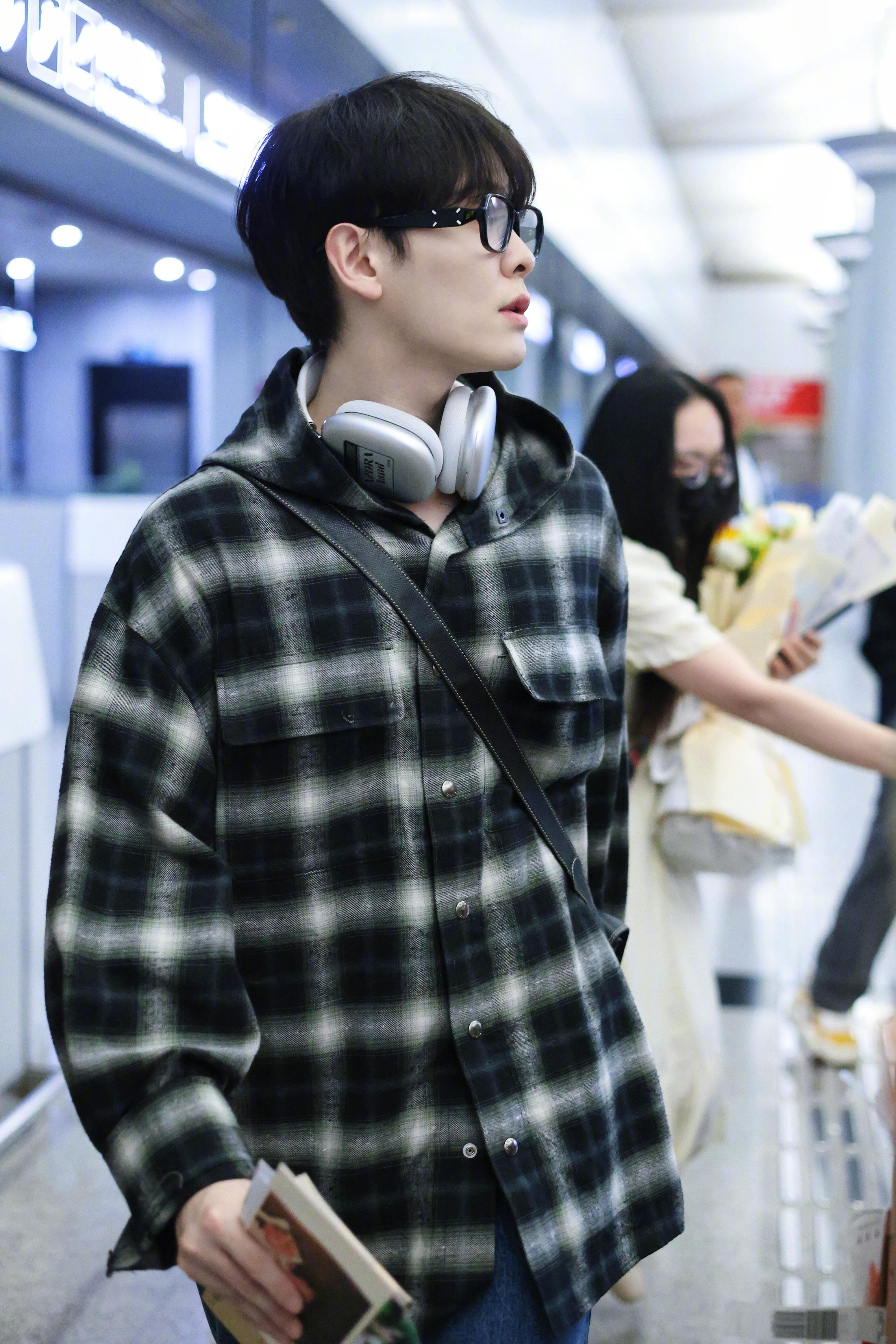 #尤长靖到长沙了# 《披荆斩棘4》长沙机场到达路透🈶️,黑框眼镜➕格子衫,男大即视感!不知道尤长靖初舞台会唱什么呢!期待值拉满!