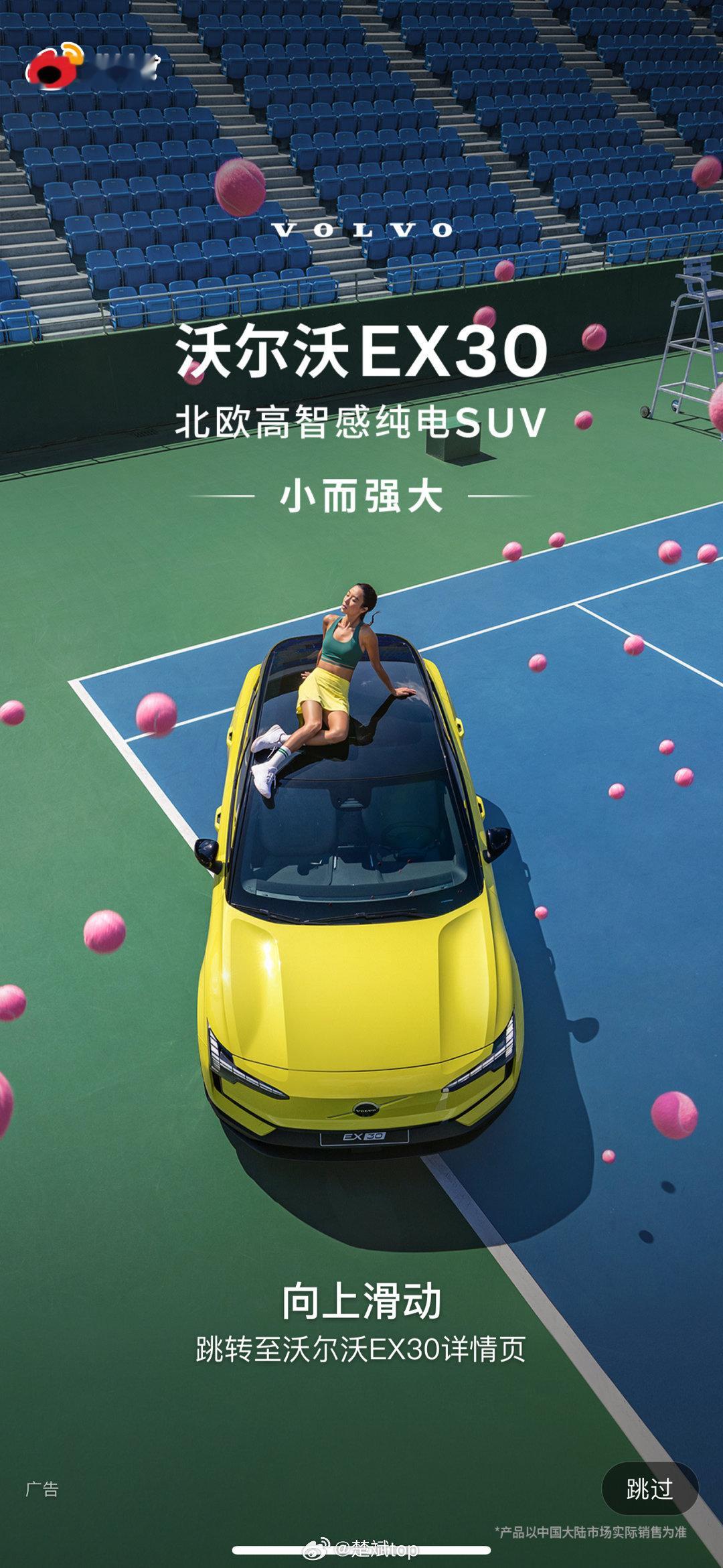 沃尔沃EX30 广告没少花钱啊,光微博开屏就有两个版本,我都看了好几轮了。 要不要给#东北电吹# 也投点啊,这小车我挺喜欢,保准给你吹好![doge]