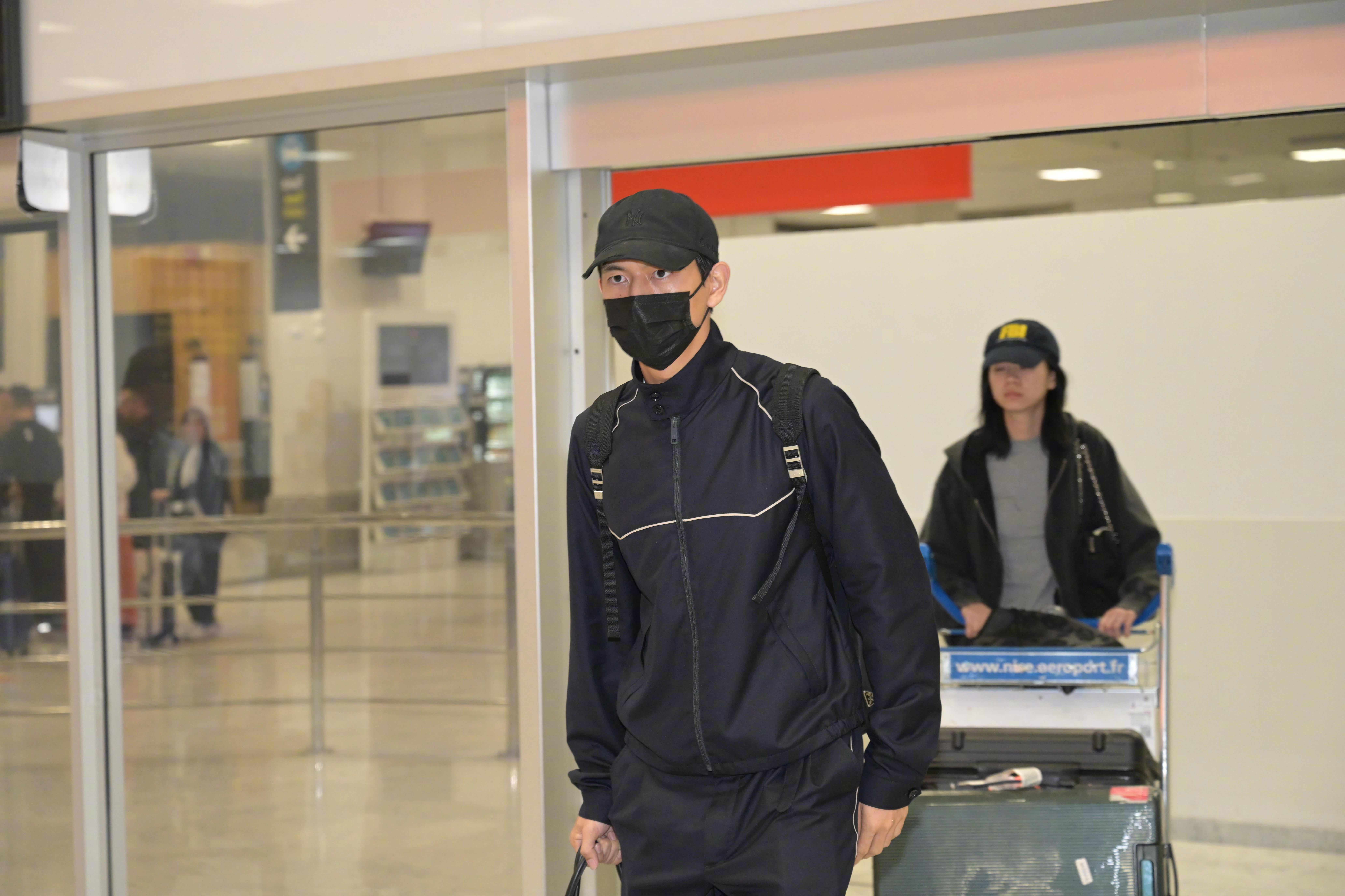 #李现戛纳到达#李现戛纳到达!一身藏蓝色套装➕黑色棒球帽!口罩也遮不住的好状态!
