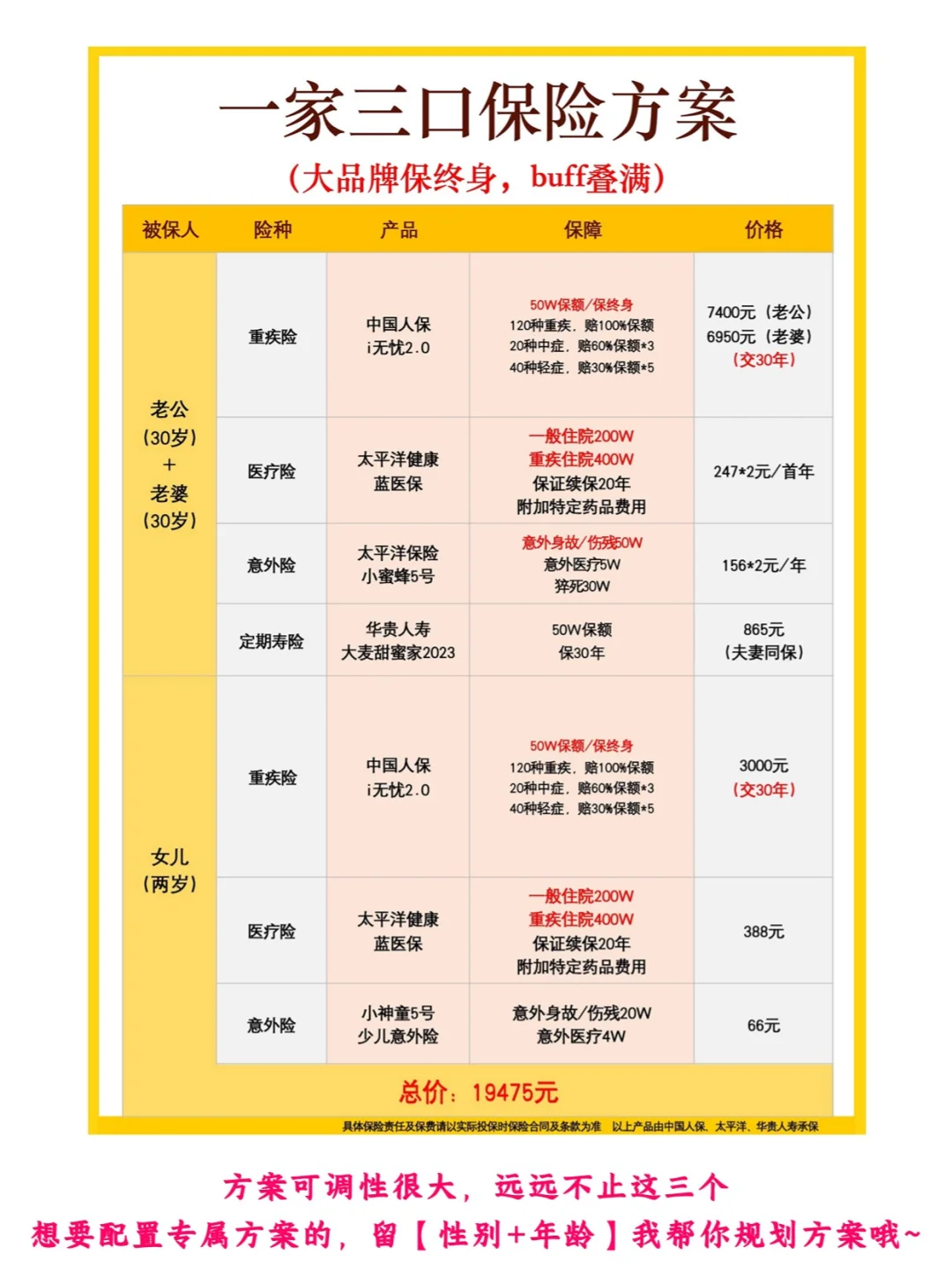 突然意识到全家人都没有保障,在裸奔,不过预算💰真的不多,她家的情况和要求是这样的: