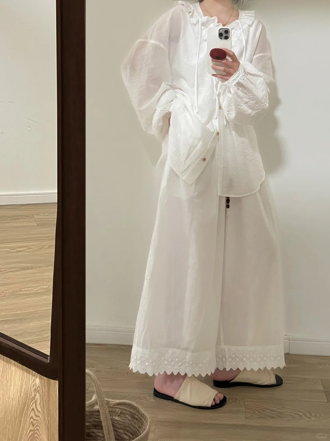 想问问里面是穿了白色背心打底吗!因为看别人穿还蛮透肉的谢谢宝宝!!