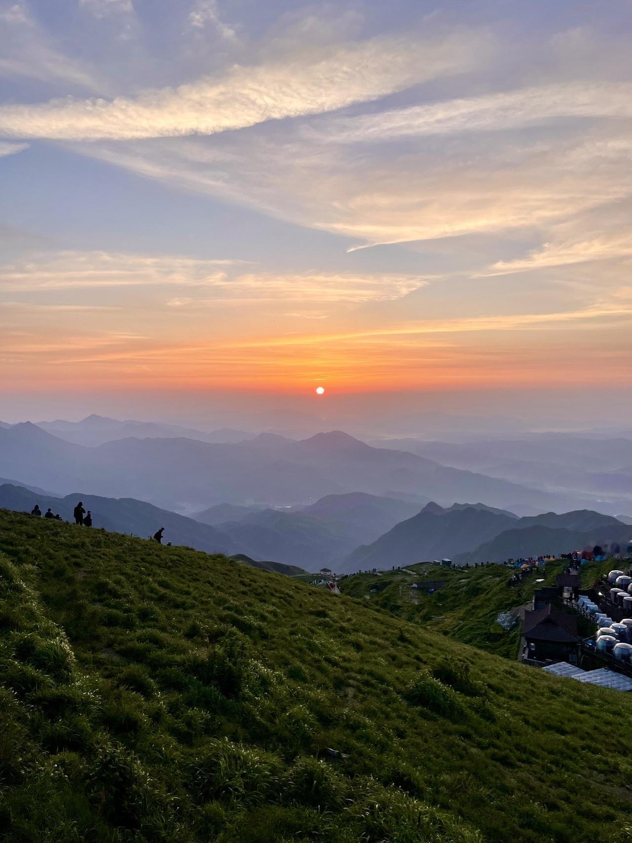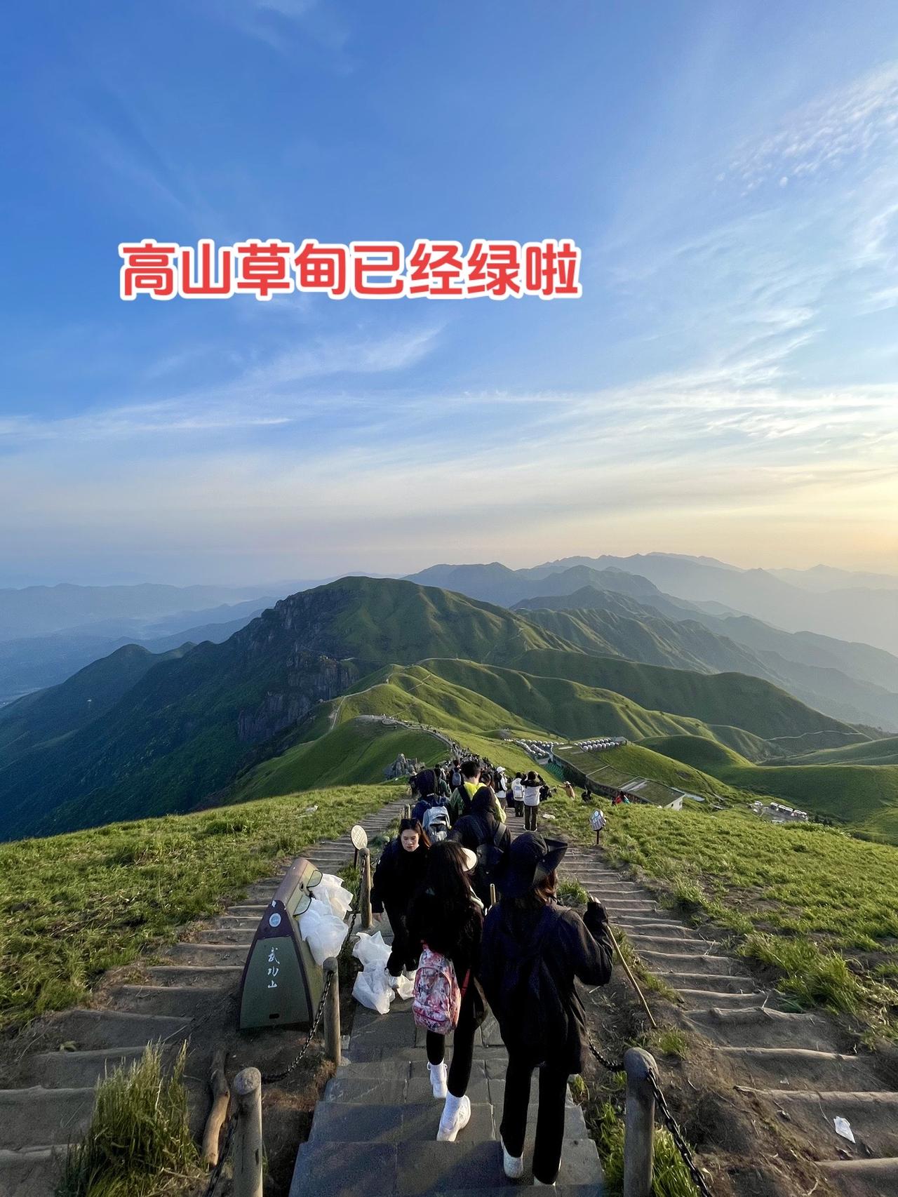 武功山的草甸已经绿了,于是和朋友约着夜爬,主打一个说走就走!😁 1⃣️交通:高铁🚄到萍乡北或萍乡站出来就有直达武功山的巴士🚌,高铁站💰27,火车站💰22,都是1小时车程,巴士运营时间到很晚不用担心,周一到周四晚上10点前都有巴士,周末最后一班11点左右。抵达武功山游客中心后先换乘免费的转运车到达登山口,就是武功山牌坊那里。(免费的车平时9点半结束,周末会晚一点,如果你巴士抵达武功山时已经没有转运车了,巴士会免费直接送上登山口) 2⃣️准备:如果有行李在登山口牌坊边有很多小卖部可以寄存,我寄存的价格是💰10,如果超过10块就不要寄,多问问几家就好。在山下多买点水,山上水贵,也可以备点干粮充饥。登山杖一般💰2,手电筒山下卖30左右。然后就是墨镜、雨衣之类。一定要带厚外套,夜晚山顶特别冷,千万别觉得山下热就不带了,山顶真的风又大又冷🥶 3⃣️门票:💰70,夜爬的话最好提前在👸号买好,尤其是周末夜爬的人多,本来我们打算周五夜爬但是网络上早就售空,于是改到周四,如果你有导游证就无所谓可以免票,而且就算票售空出示证件就可以直接进去。 4⃣️夜爬过程:我们是晚上十一点多开始爬山的,一定不要太早,因为你爬上去之后离日出还早就要在山顶吹冷风了。⚠️所以推荐11-12之间开始夜爬,体力一般可以在10点左右开始!刚开始只有一条路,就是中庵索道旁边的那段路,一路上可以听到瀑布声,台阶上也有夜灯,爬山的人也很多。等爬到中庵索道上站有一个分岔口,从山下到这里大约花费1.5-2小时,分岔口左边是好汉坡上山,右边是情人花廊上山,官方推荐的是好汉坡,我看大部分人也走好汉坡,但是我更推荐情人花廊这条路更短,而且适合新手,但是唯一不好的就是走的人少,而且没有照明夜灯需要用到手电筒。情人花廊这条路比较抖,但一路上可以看到星空。我们大约四点就快到山顶了,还找个了地方小睡了一会。五点左右到达山顶,这个时候天蒙蒙亮,山上的人已经很多了,虽然累但是看到日出的那一刻真的值得!(⚠️这个季节山上很多臭虫,所以还好我们没在山上住) 5⃣️下山:日出之后我们走的好汉坡下山,一路上都是高山草甸真的绝美!大约1.5h后到达中庵隧道💰50(导游证可免票),我建议坐索道不然下山真的伤膝盖,如果不坐索道徒步下去约2h。 下山后先坐转运车再换巴士就可以回萍乡!