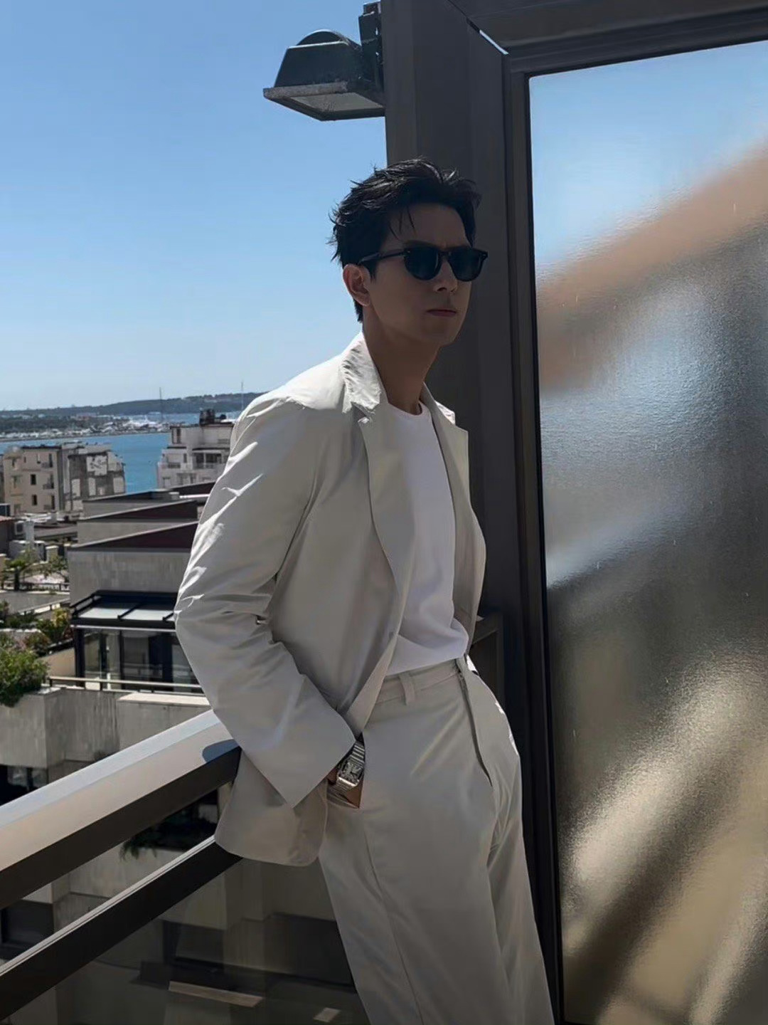 #李现戛纳第四套# 戛纳第四套造型来啦!谁懂李现穿白!全白西装松弛又干净,轻熟风休闲真的让人移不开眼!