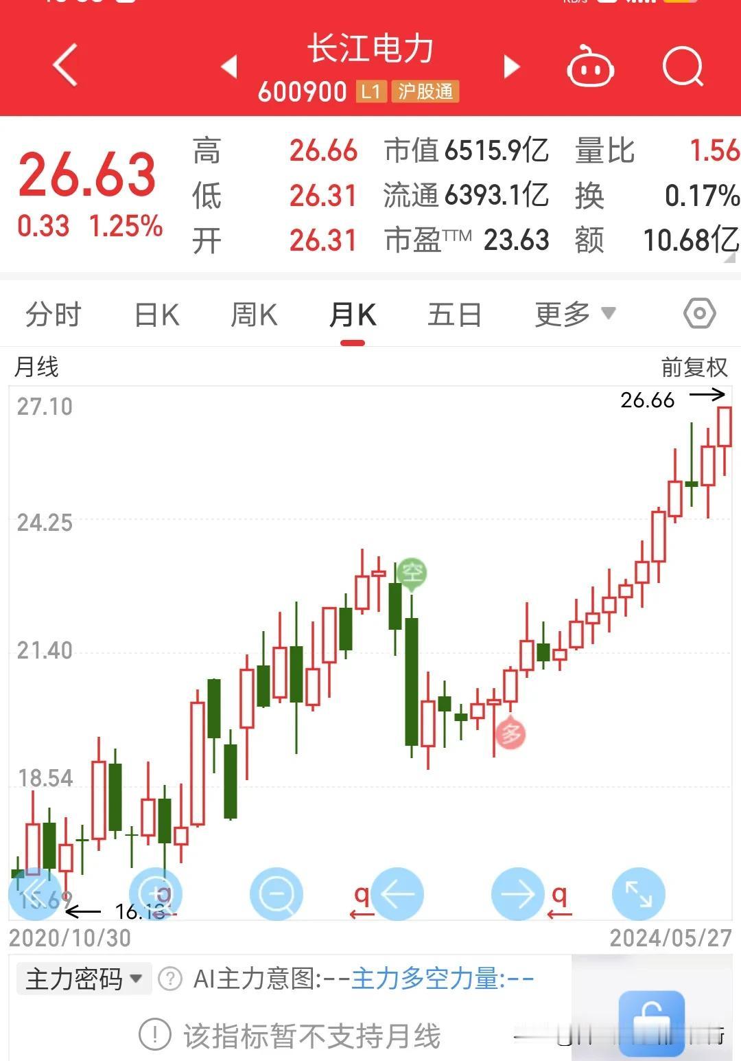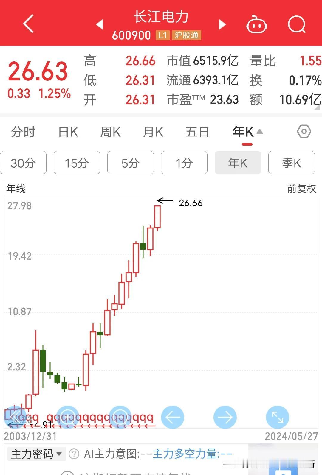 2亿股民,7亿基民无一不嘲讽我大A永葆青春,从爸爸炒股3000点到儿子炒股还是3000点,一代人都快没了,大A还是永葆青春的3000点。只能说是2亿股民,7亿基民思路不对选错了股票,这几年A股跌的可以说是体无完肤,逼脸都不要了。毕竟外围股票全是历史新高,但是我们有长江电力啊。看看长江电力这走势,年线还是历史新高,月线比当年启动的贵州茅台还牛,长江电力一年前就讨论这只股票了,大家说你买进去就见顶,可惜一年后的今天长江电力再次历史新高,一年前没买的还是拍大腿,电力股走牛还是有逻辑的,毕竟新能源汽车,电瓶车泛滥成灾,社会用电量肯定是倍增,这样整个思路产业链就是电力-煤炭。因为我国发电主要还是靠煤炭,中国神华也是再次创十年新高,有望突破历史新高96块钱一股吗?拭目以待