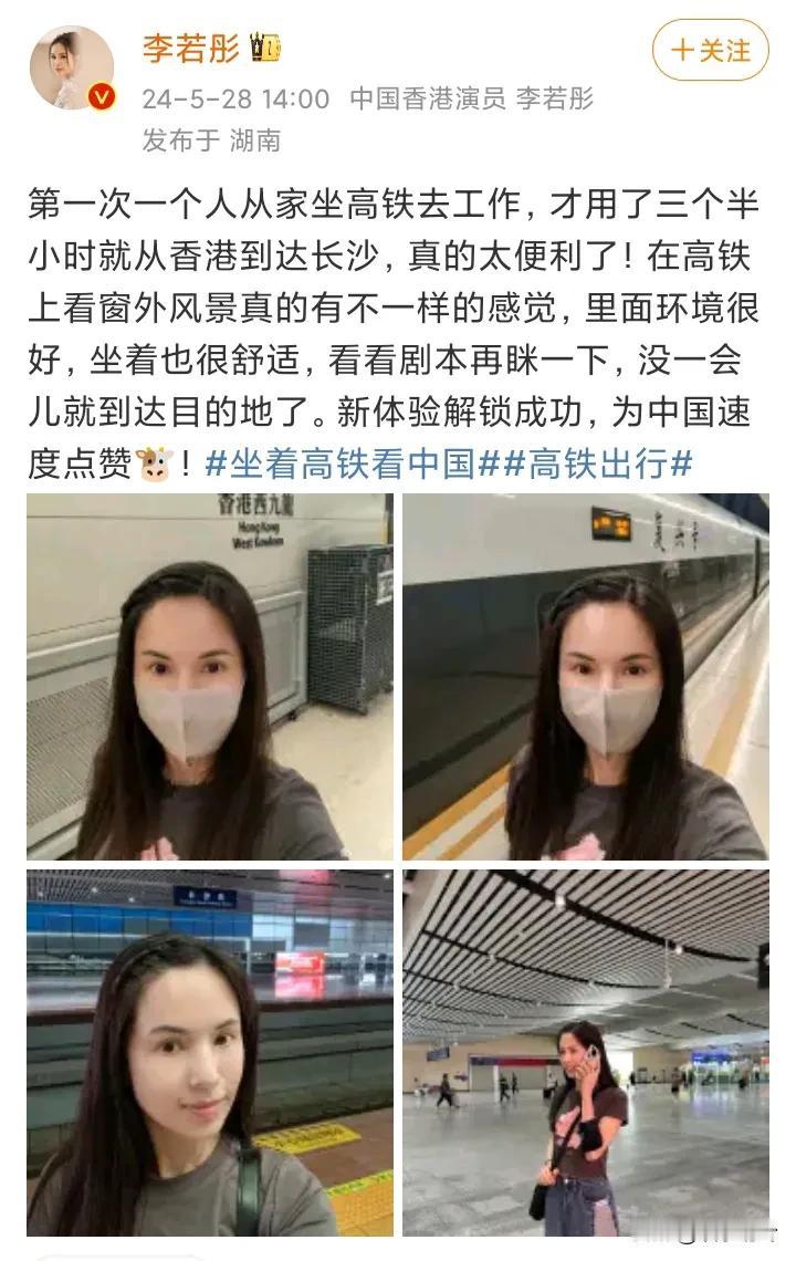 李若彤第一次坐高铁,从香港直达长沙。 她没有选择飞机,也没有选择从哪里中转,而是直接从香港上车,长沙下车,只用了3个半小时,非常方便。 她对中国高铁的感受是①环境很好、②坐着舒适、③速度出乎意料的快,所以她由衷的为中国速度点赞!👍👍👍