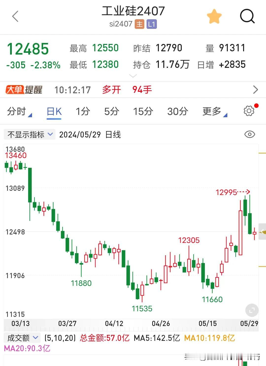 期货大赛里卧虎藏龙啊,净利润回撤100块钱,期货通名词下滑2,全国期货大赛名次下滑33。昨天期货大回调,想捞一把工业硅的,可没想到工业硅竟然收盘在最低点,着实被工业硅坑了下,还好手里持有甲醇多单并且在2643出了甲醇,不然何止回撤100块钱。工业硅这个老六怕是跟风盘了,两根大阴线打的多头利润回撤太大,估计不少多头心里素质不够强大都选择平仓了。