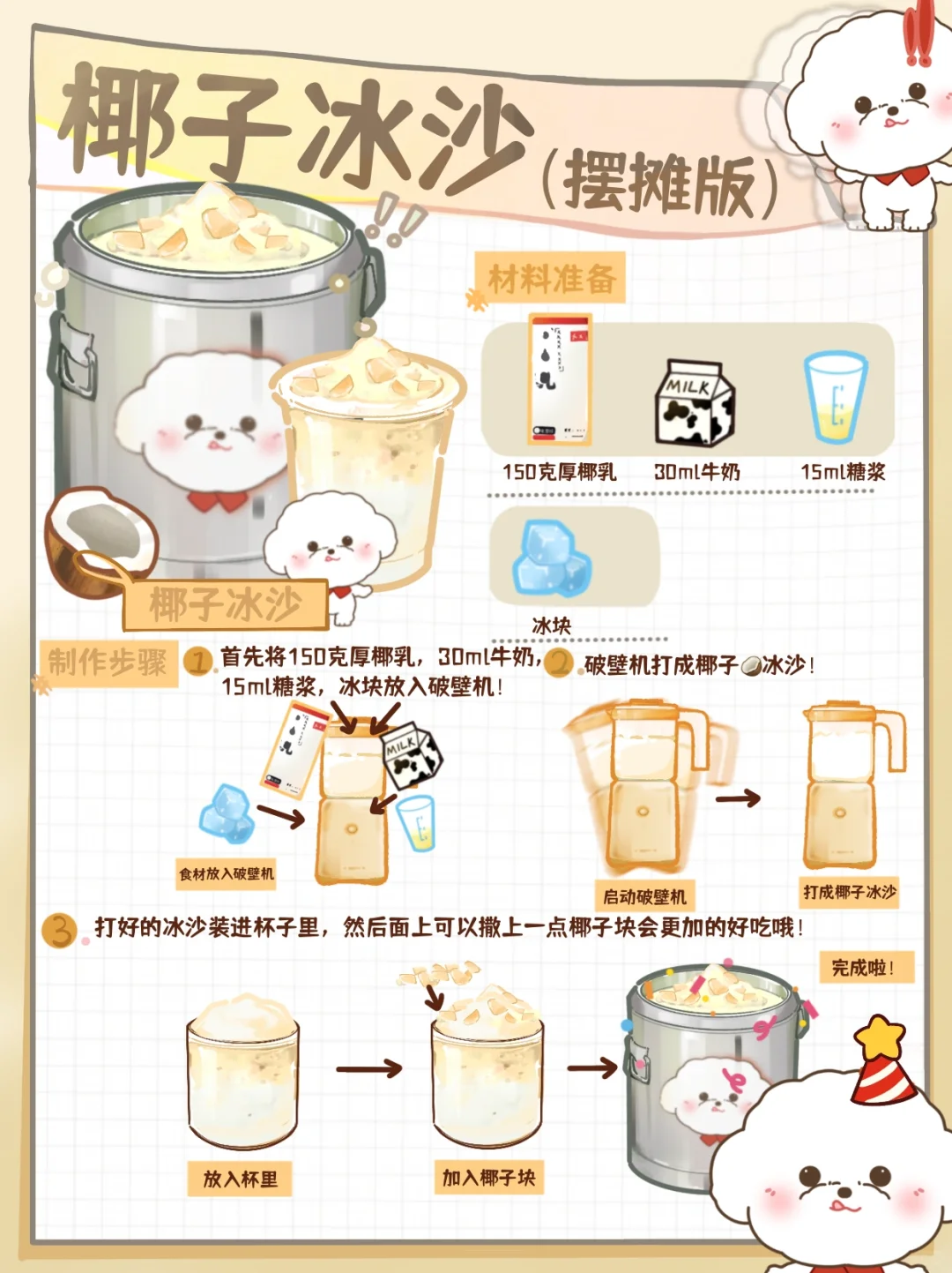 150克厚椰乳 ➕30ml牛奶🥛➕15ml糖浆➕冰块