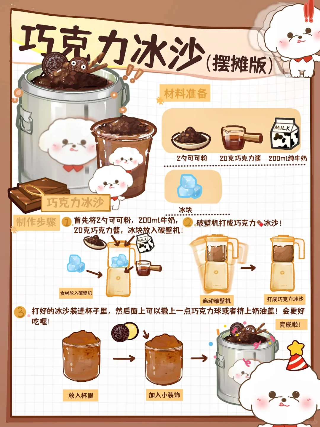 2勺可可粉➕ 20克巧克力酱200ml纯牛奶➕冰块