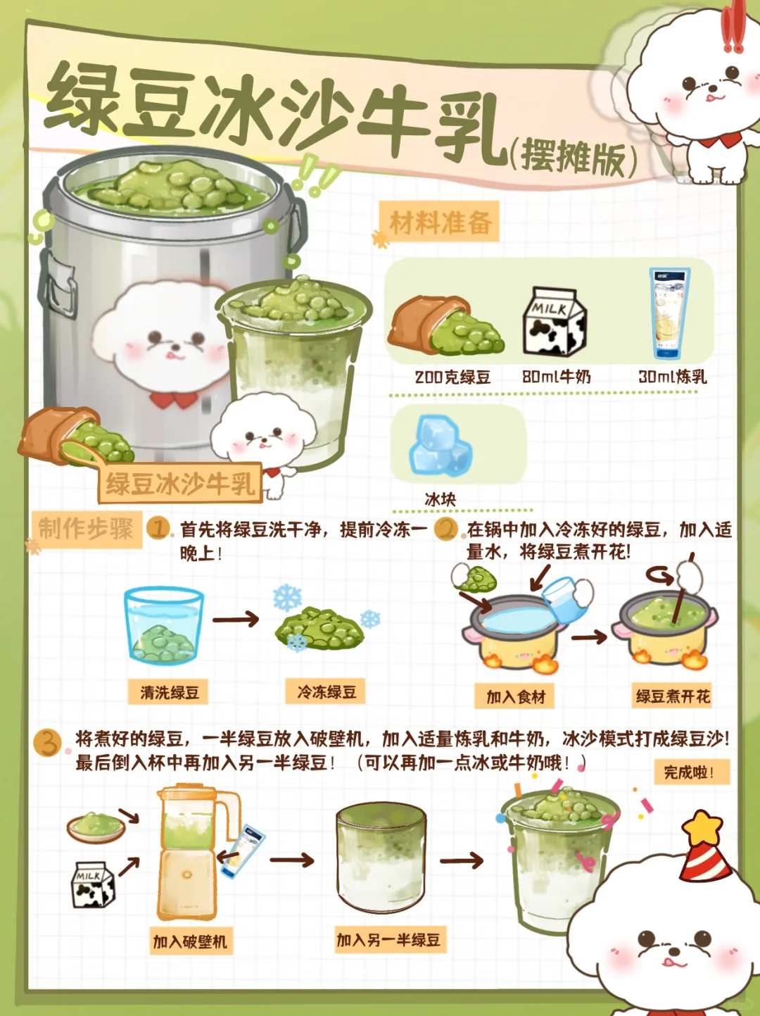 200克绿豆➕ 100ml纯牛奶➕适量糖➕ 30ml炼乳 ➕适量冰块