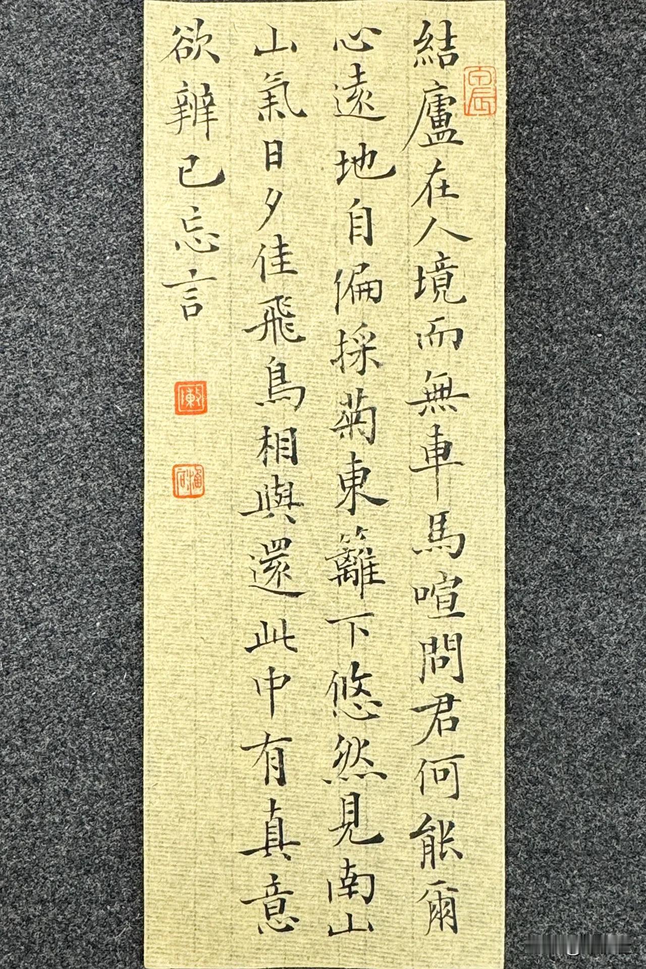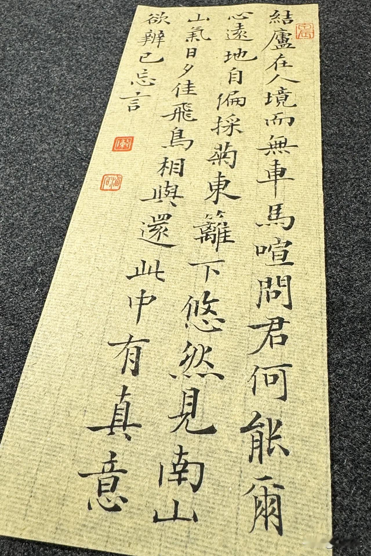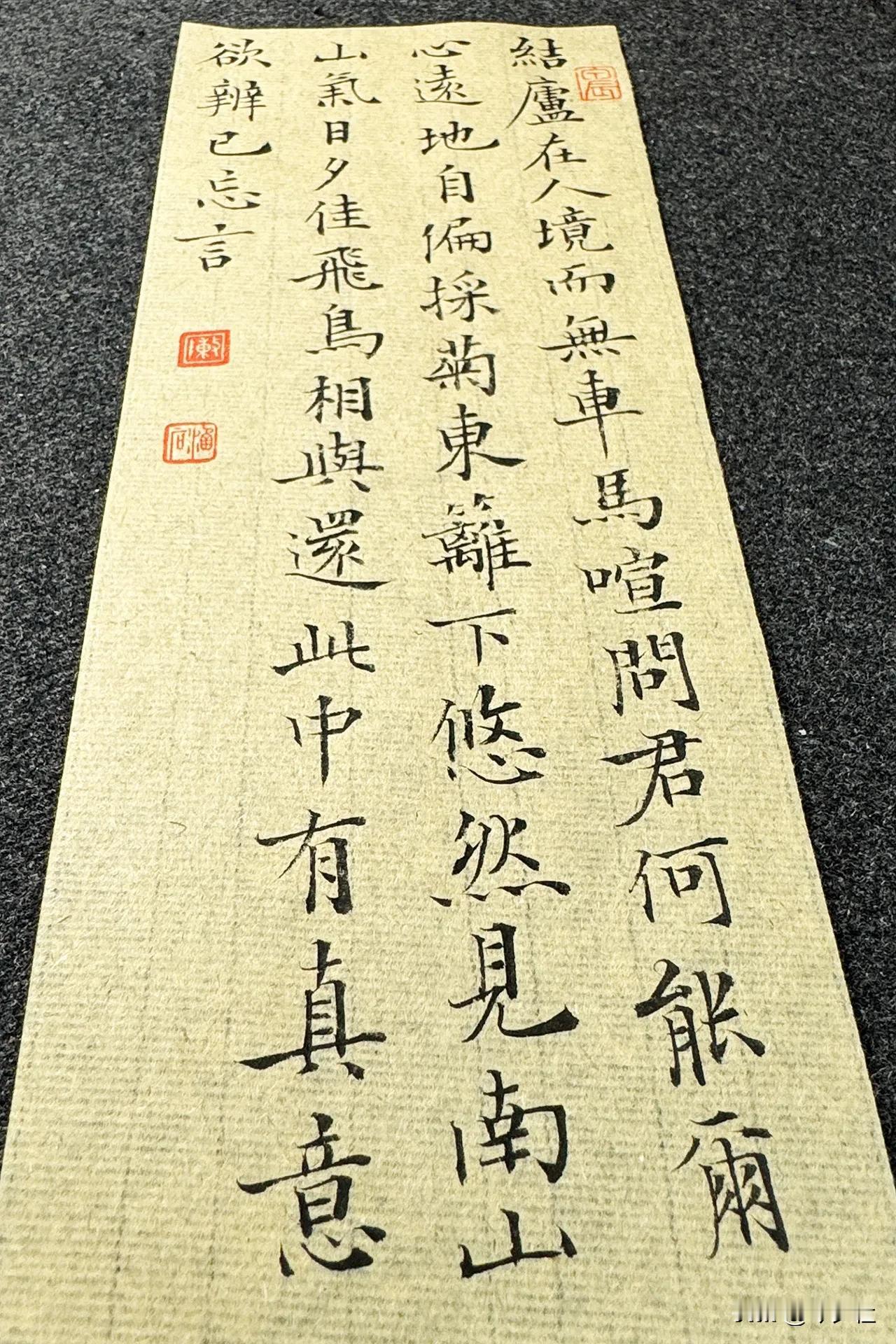 今夕社小楷,陶渊明《饮酒·其五》静态版。 结庐在人境,而无车马喧。问君何能尔?心远地自偏。 采菊东篱下,悠然见南山。山气日夕佳,飞鸟相与还。 此中有真意,欲辨已忘言。 笔:墨社今夕软玉 | 纸:墨社今夕帘纹毛边纸 | 墨:墨社今夕轻胶中浓墨液 #书法# #小楷# #小楷毛笔# #小楷毛边纸# 墨社今夕软玉