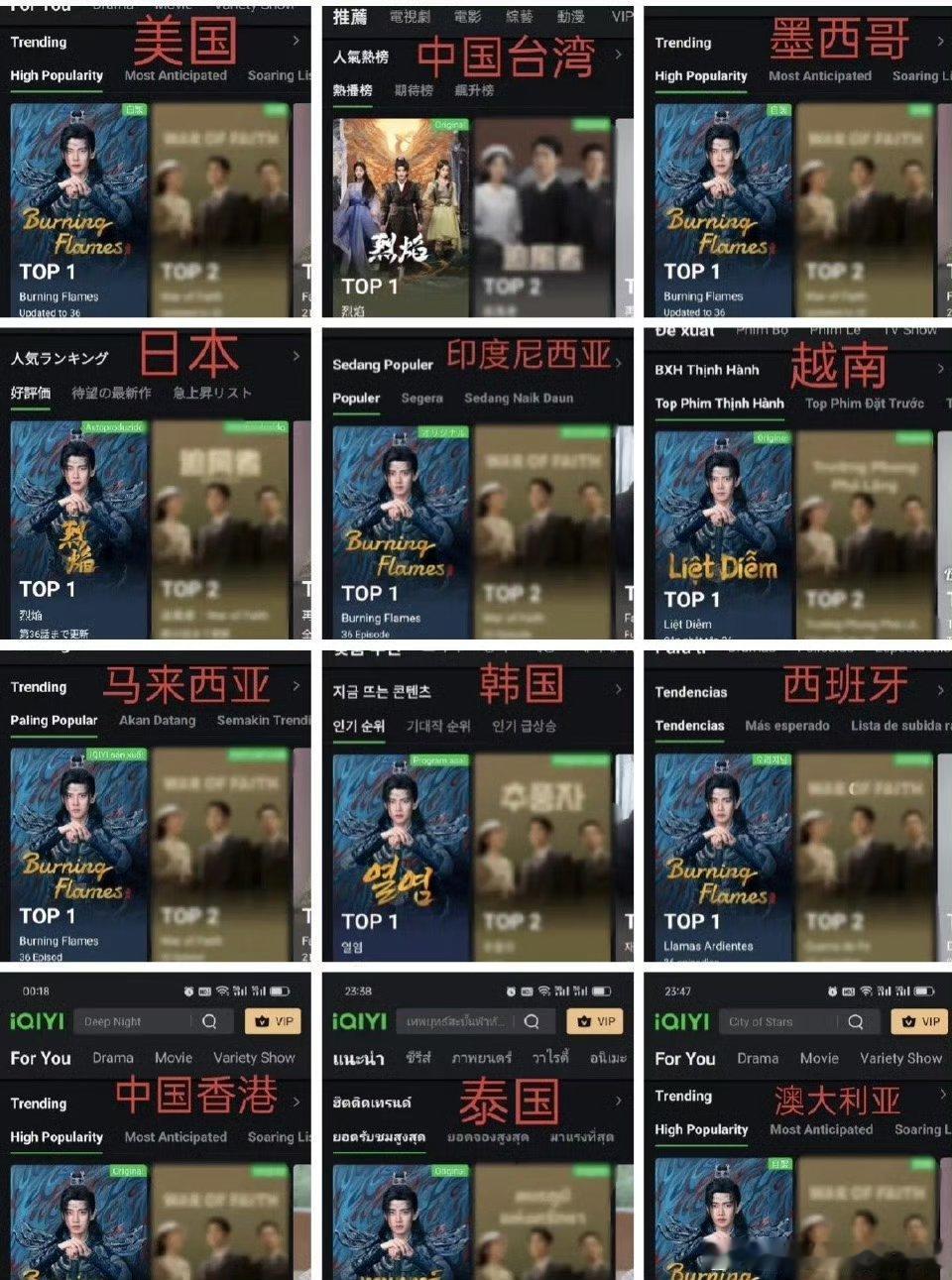 任嘉伦《烈焰》将于2024年6月5日在越南HTV7上星播出,爱奇艺海外站16个国家和地区霸榜[给力]
