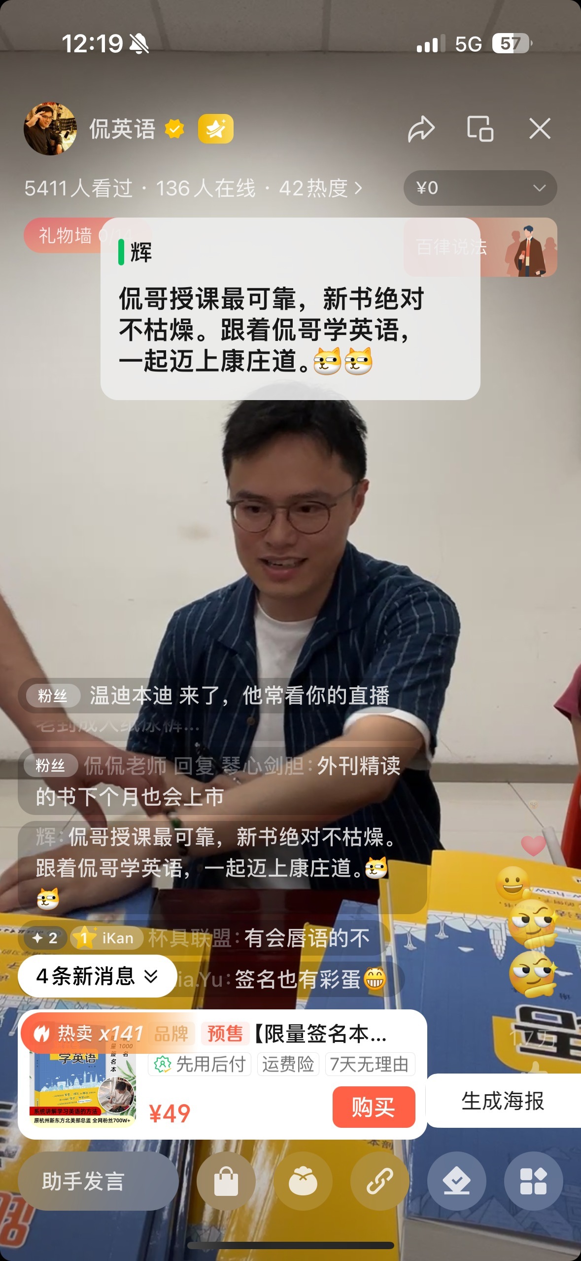 第一波1000本签名书已经售罄了,上午去新华书店物流中心又签了1500本,希望得到侃哥签名书的同学抓紧抢第二波呀~这本书是帮助大家搞清楚英语发音、词汇和语法的底层逻辑,讲学习方法的,适合各个年龄段的英语学习者、爱好者。(微博挂不了书的链接,想要的同学私信我) [爱你]