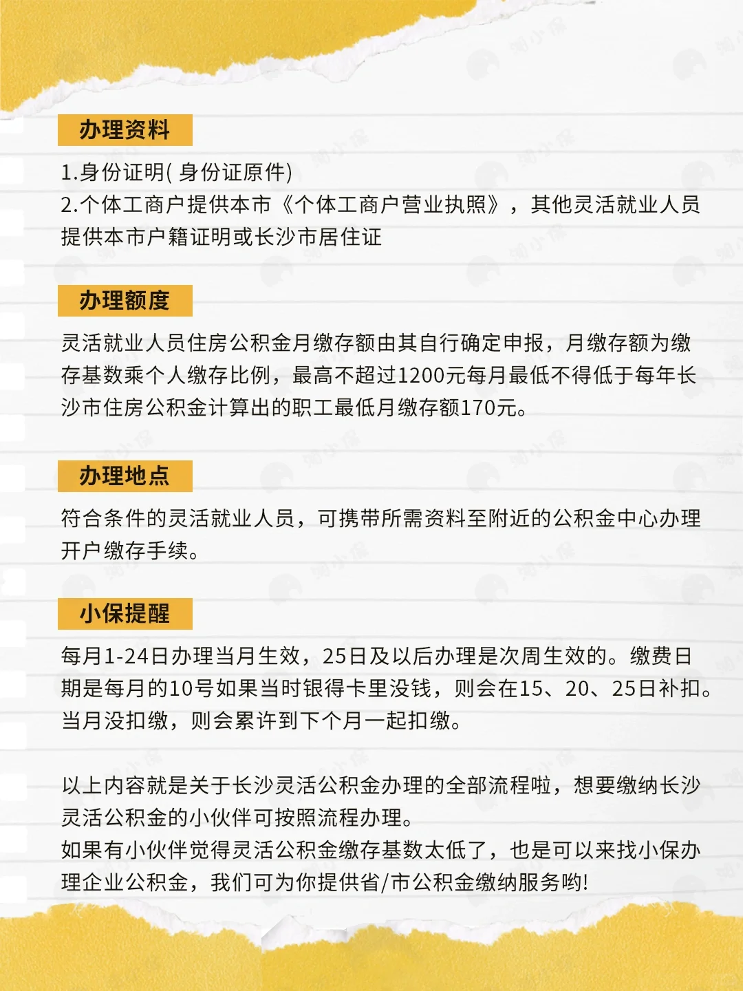 以上内容就是关于长沙灵活公积金办理的全部流程啦,想要缴纳长沙灵活公积金的小伙伴可按照流程办理。
