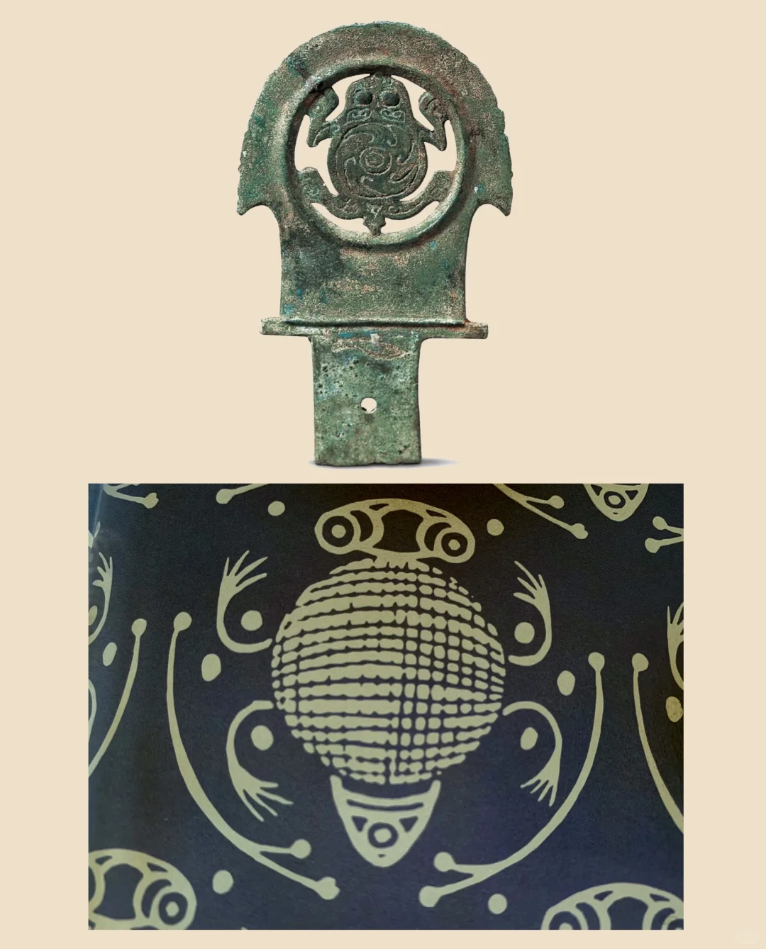 大家好,欢迎来到【某先生】课堂之中国传统纹样篇,今天为大家讲述的是关于《蛙纹》的故事~ - 蛙纹反映了先民对水的崇拜, 蛙作为水中生物,被赋予了图腾化的艺术造型, 蛙纹常见于彩陶罐, 不仅作为装饰,还符合先民多子多孙的心理, “蛙鸣雨至”,反应蛙纹还有降雨的寓意, 也是具有生命的象征。