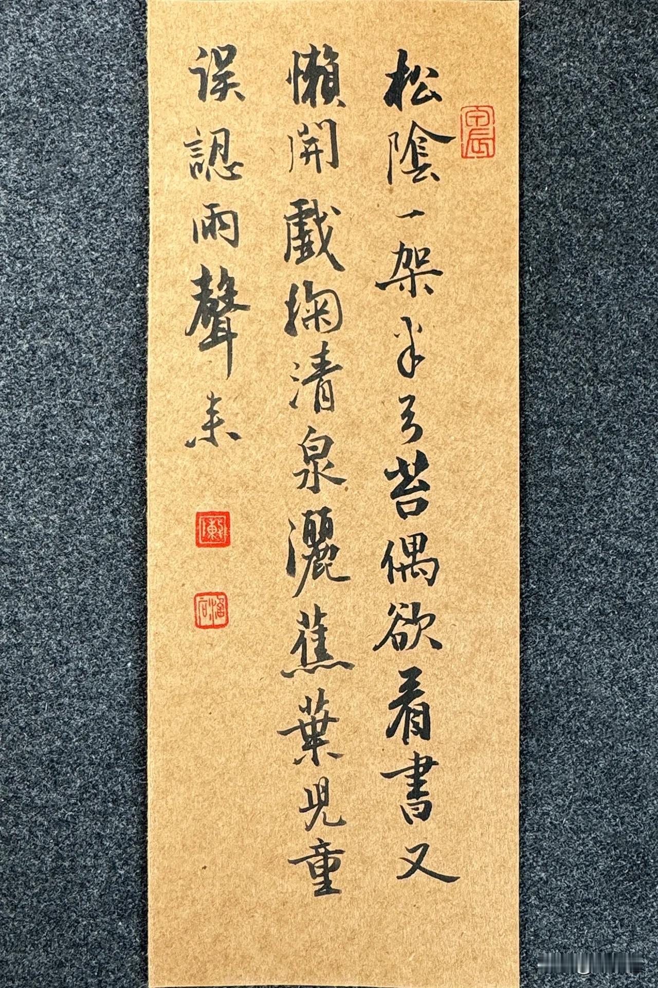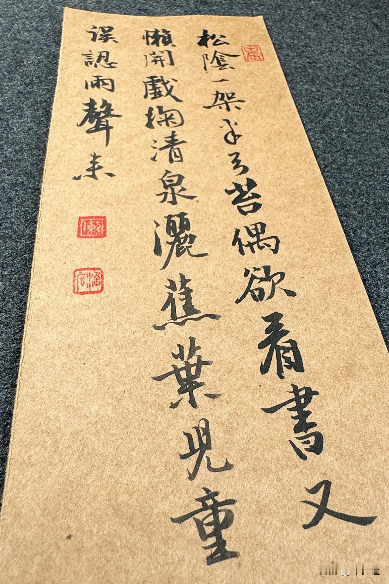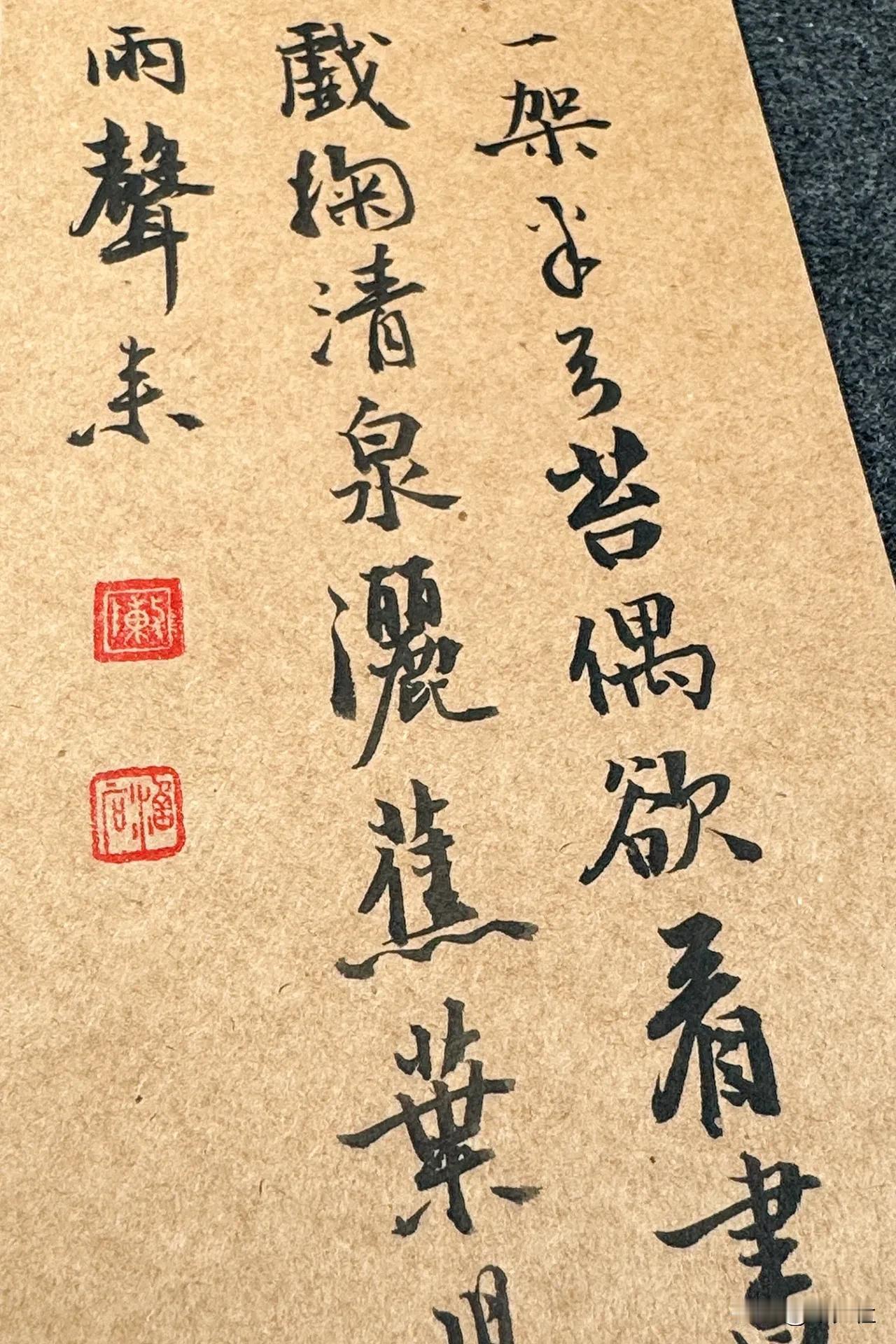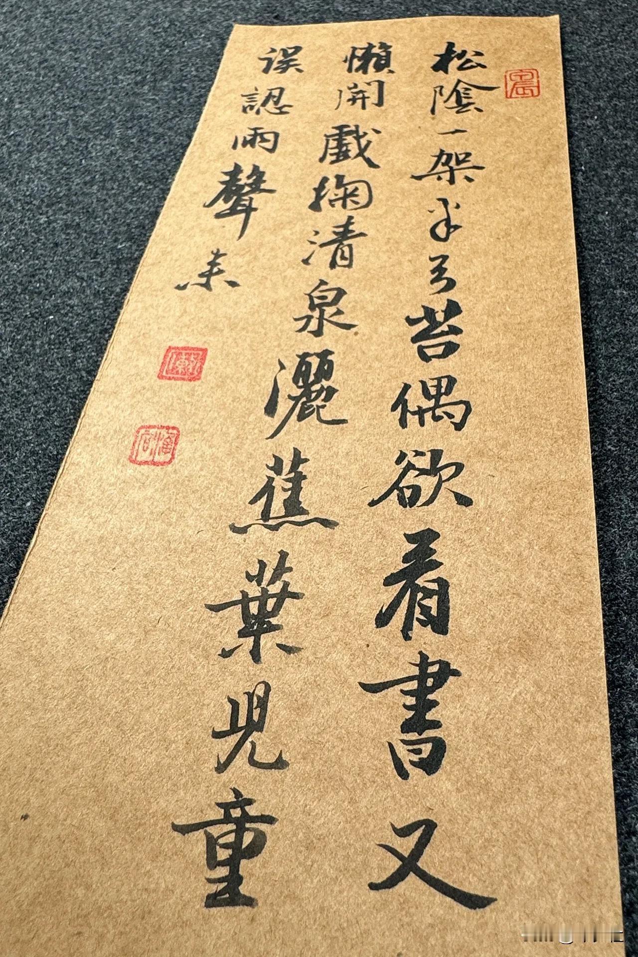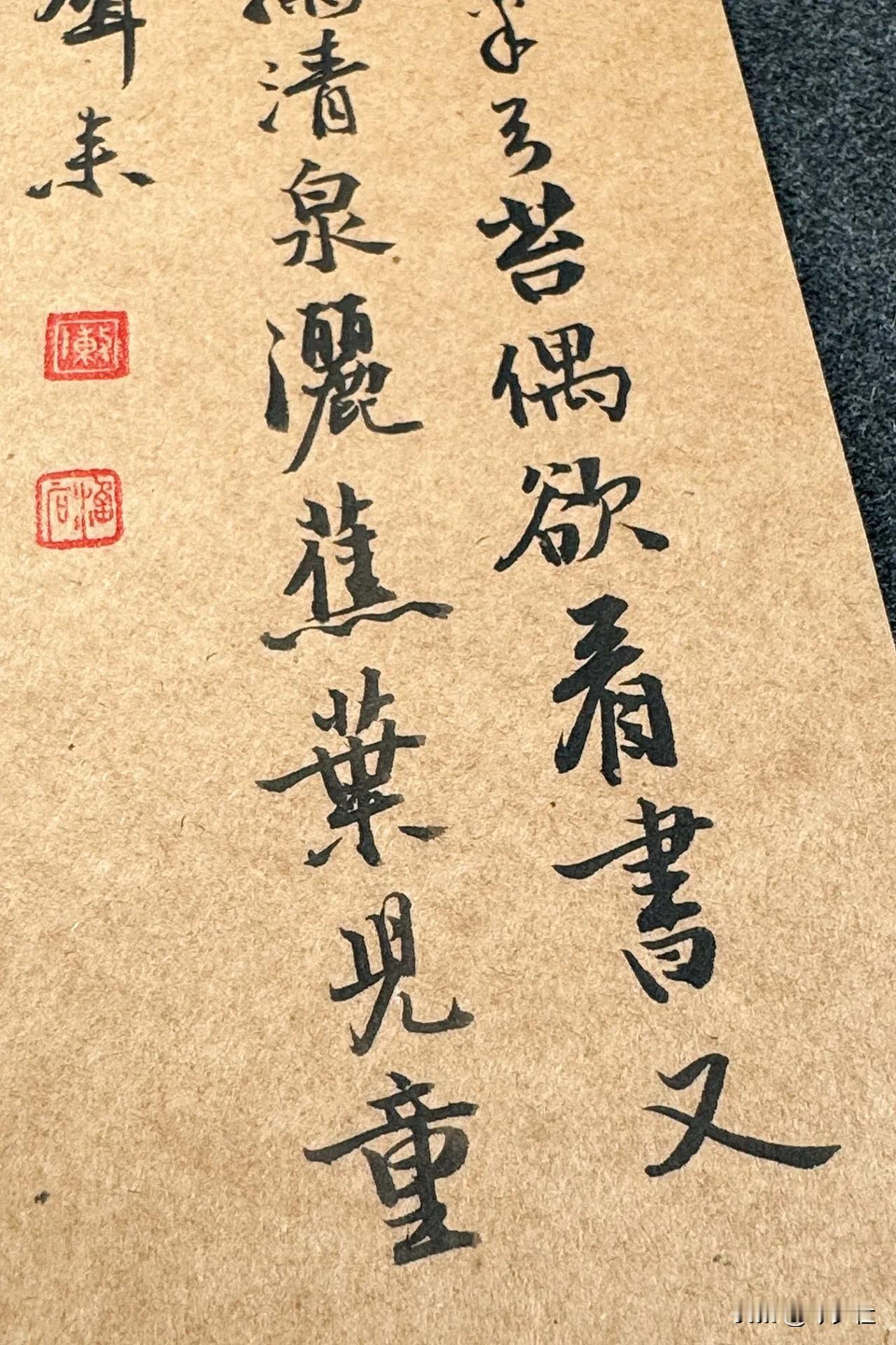 今夕社小行书,杨万里《闲居初夏午睡起·其二》静态版。 松阴一架半弓苔,偶欲看书又懒开。 戏掬清泉洒蕉叶,儿童误认雨声来。 笔:墨社今夕软玉 | 纸:墨社今夕牛皮纸 | 墨:墨社今夕轻胶中浓墨液 #书法# #行书# #行书毛笔# #牛皮纸#