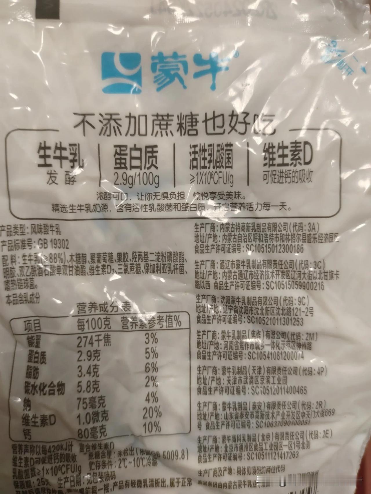 蒙牛这个品种的风味酸奶让我惊呆了,打着0蔗糖我以为真的是不含糖酸奶,结果配料表还真是不含蔗糖,代糖是一个不少全在了齐全。不明白小孩子为啥都喜欢喝酸奶,因为酸酸甜甜吧,但是配料表真的是各种呵呵呵。我还是觉得低温奶好点,至少配料表就一个生牛乳其他什么都没了,没太多杂七杂八的添加剂东西,除了口感比酸奶差一点。都说现在人精贵啦,以前有的吃喝就不错了谁还在乎健康不健康。时代变了哦