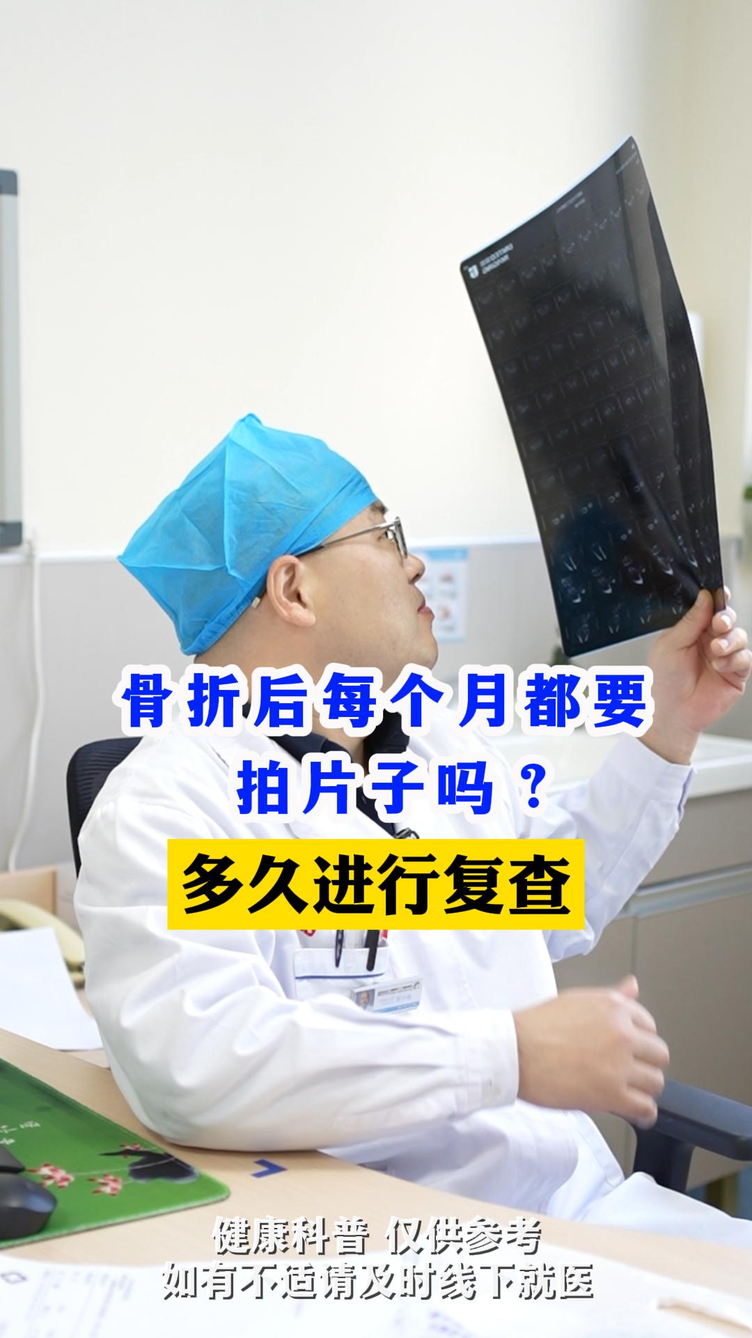 骨折后每个月都要 拍片子吗?。骨折的愈合是需要一定的时间的,一般情况不需要每个月都要拍片子(点击文案展开)。大家好,我是手及上肢外科郝医生,在临床上很多的病人也问骨折后多久拍一次片子,看看恢复情况,其实正常情况下骨折后一个半月左右就会形成比较牢固的骨性连接,骨折的恢复是一个漫长的过程,需要骨痂的生长,不需要太频繁的复查,放射线还可能会影响骨折的恢复,会对骨折的愈合有一定的影响。但是,如果在骨折恢复期患者出现了异常的疼痛或者其他不适的感觉,以肘关节为例,如果患肢吊袋出现松动就或者滑脱,就需要进行拍片复查,以免