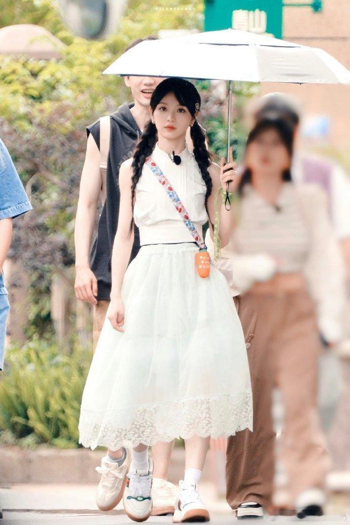 但凡张天爱身上有一点赘肉都穿不了这个衣服