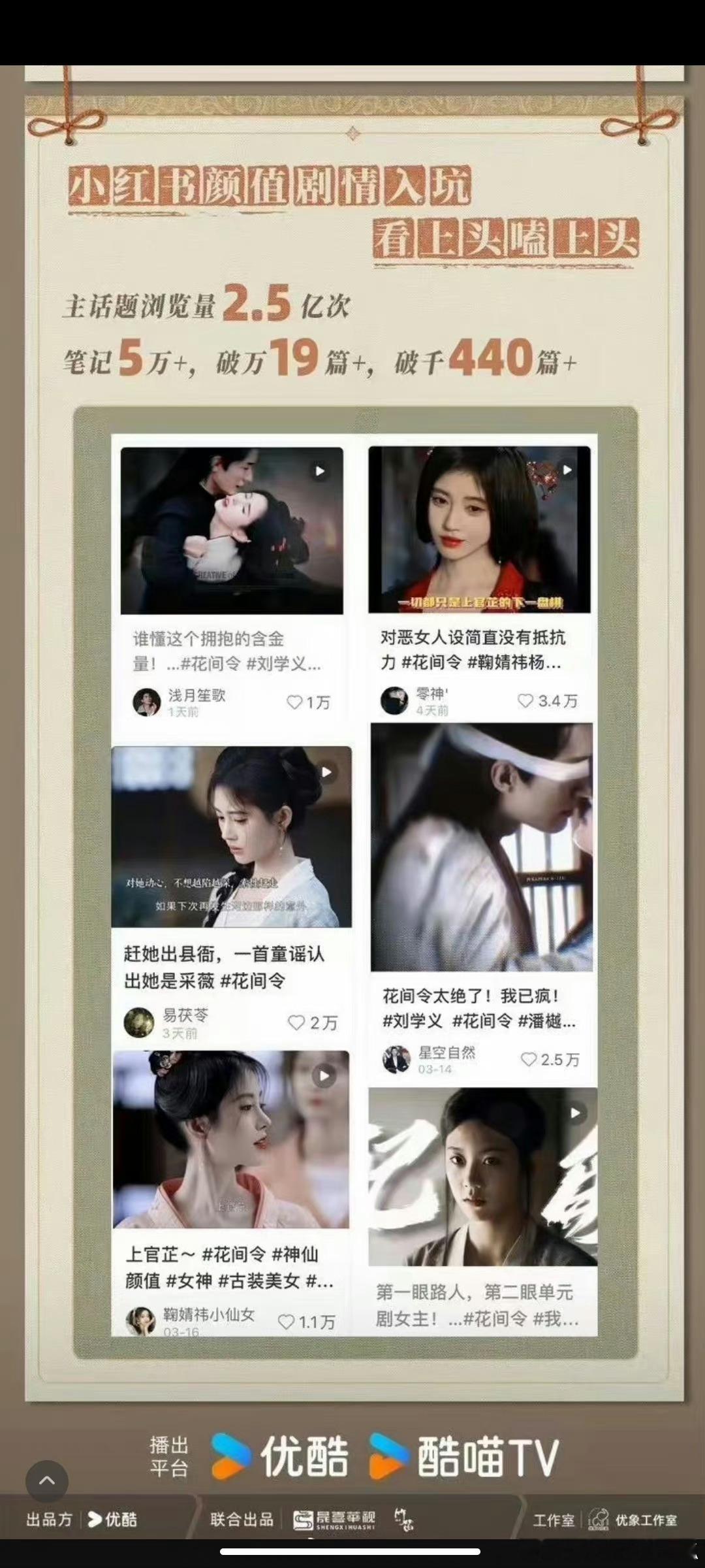 郫县在疯狂拉踩鞠婧祎的花间令,有一说一,花间令小成本制作,演员除了小鞠其他都是糊糊,播出成绩已经非常好了