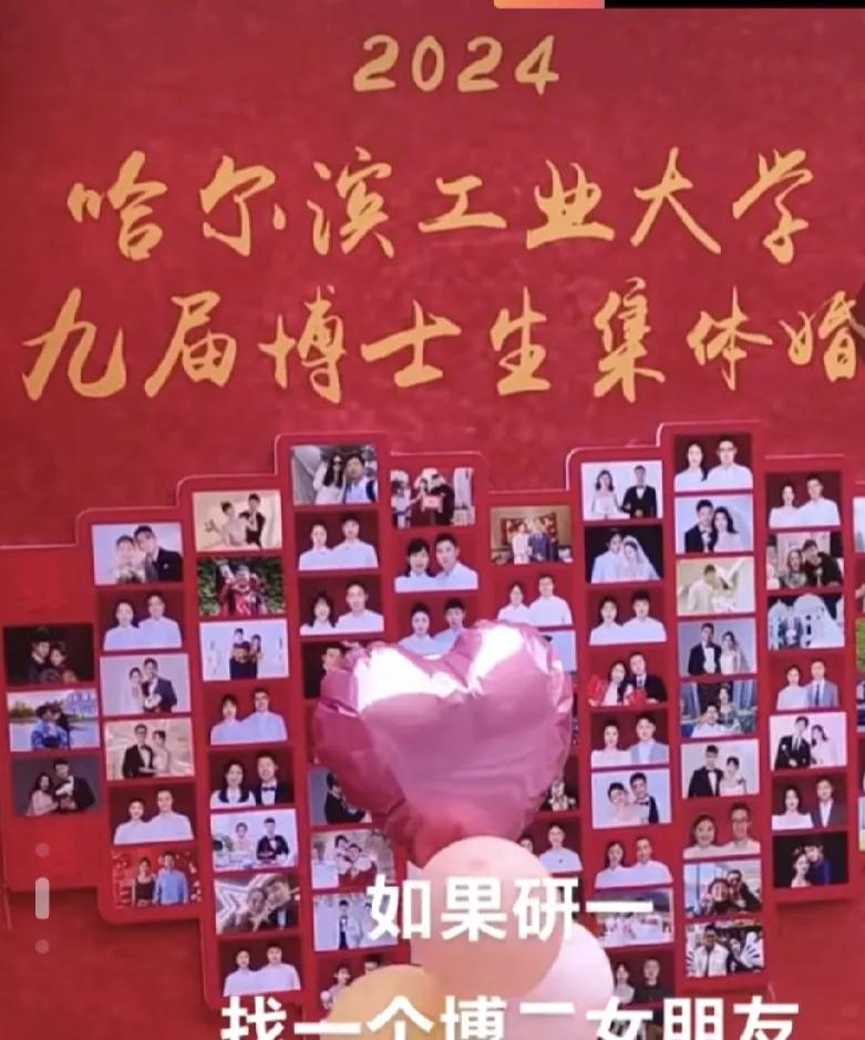 哈工大就是给力!哈工大又举行了博士生们的集体婚礼,真的很羡慕,在哈工大能成双结对,而且都是高学历,高材生,以后就是高知家庭,生的孩子想必也是非常聪明,甚至智商都高于父母![赞][赞] 这已经是第九届的博士生们的集体婚礼了,哈工大为学生们真的很用心,情溢哈工大! 这份集体婚礼。 哈工大还送新郎定制的领带,钻石,手手捧花等婚礼用品,这样的哈工大谁能不爱,像大家庭一样,哈工大就像结婚证人一样,去呵护人,保护你! 有网友调侃,男的都很董事啊! 女的都很漂亮! 想要感受,那就来哈工大啊![捂脸]