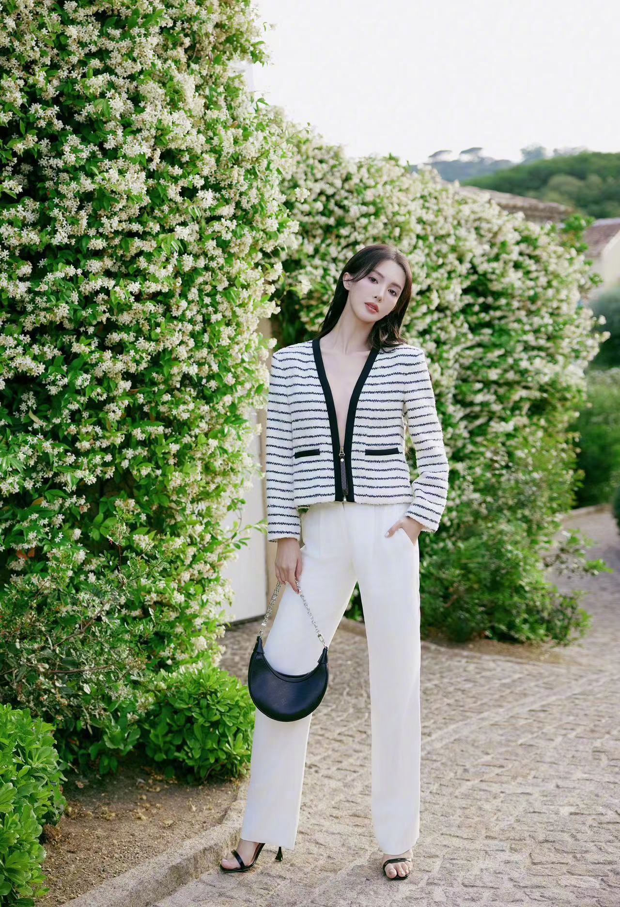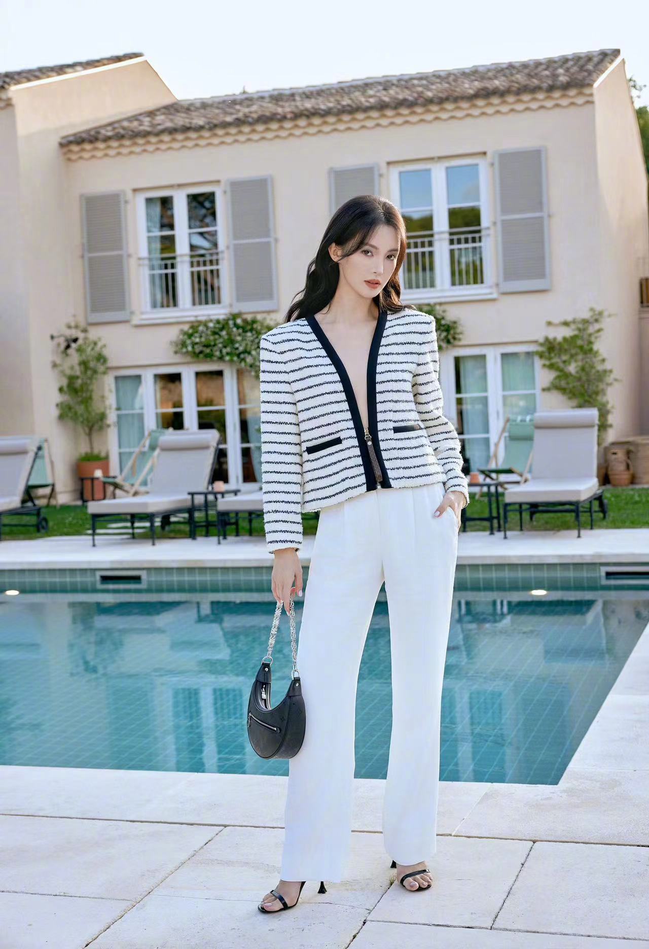 #金晨深V夹克#最新造型,深V黑白条纹夹克,好敢穿啊!看似日常但其实好多小心思~金晨完美驾驭住了[爱慕]