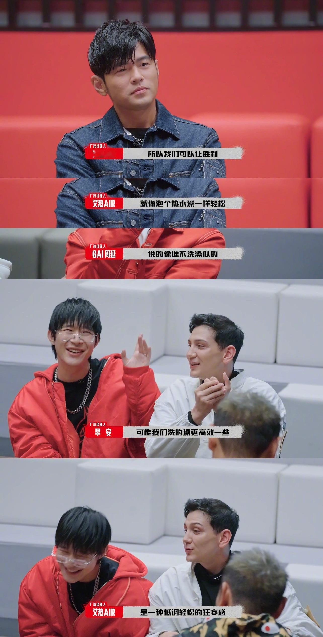 #艾热早安称自己赢过所有说唱节目冠军# 《说唱梦工厂》解释自己的厂牌名“热水澡”,因为他们拿过所有说唱节目的冠军!低调轻松的狂妄到了!