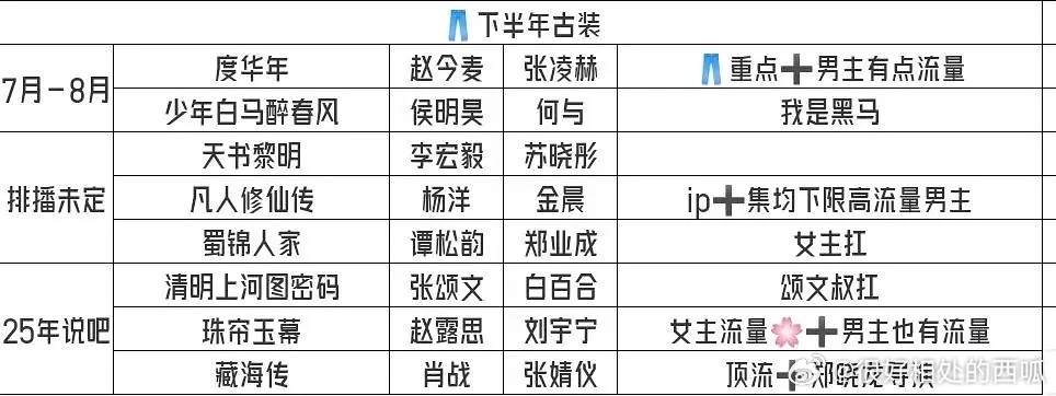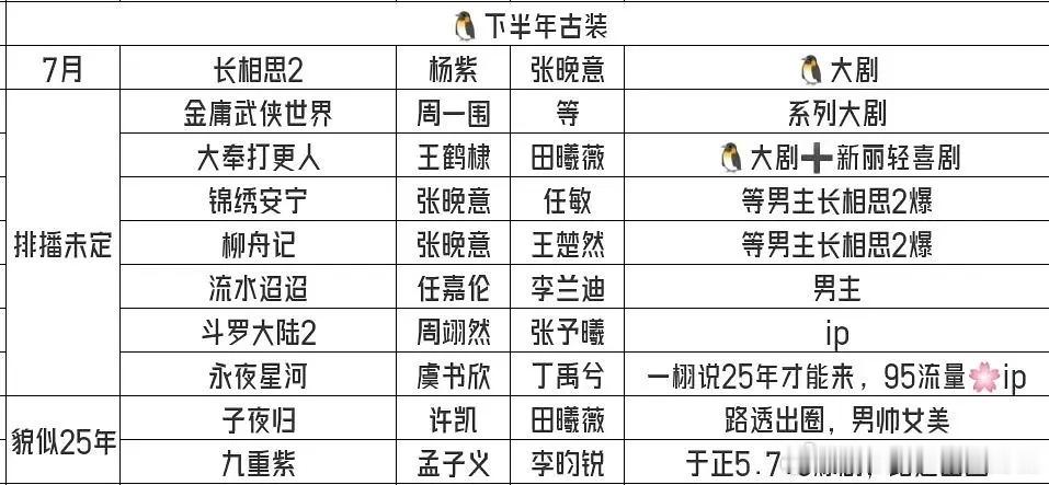 🐧🥝👖三大平台下半年古装待播剧汇总,想看哪部?