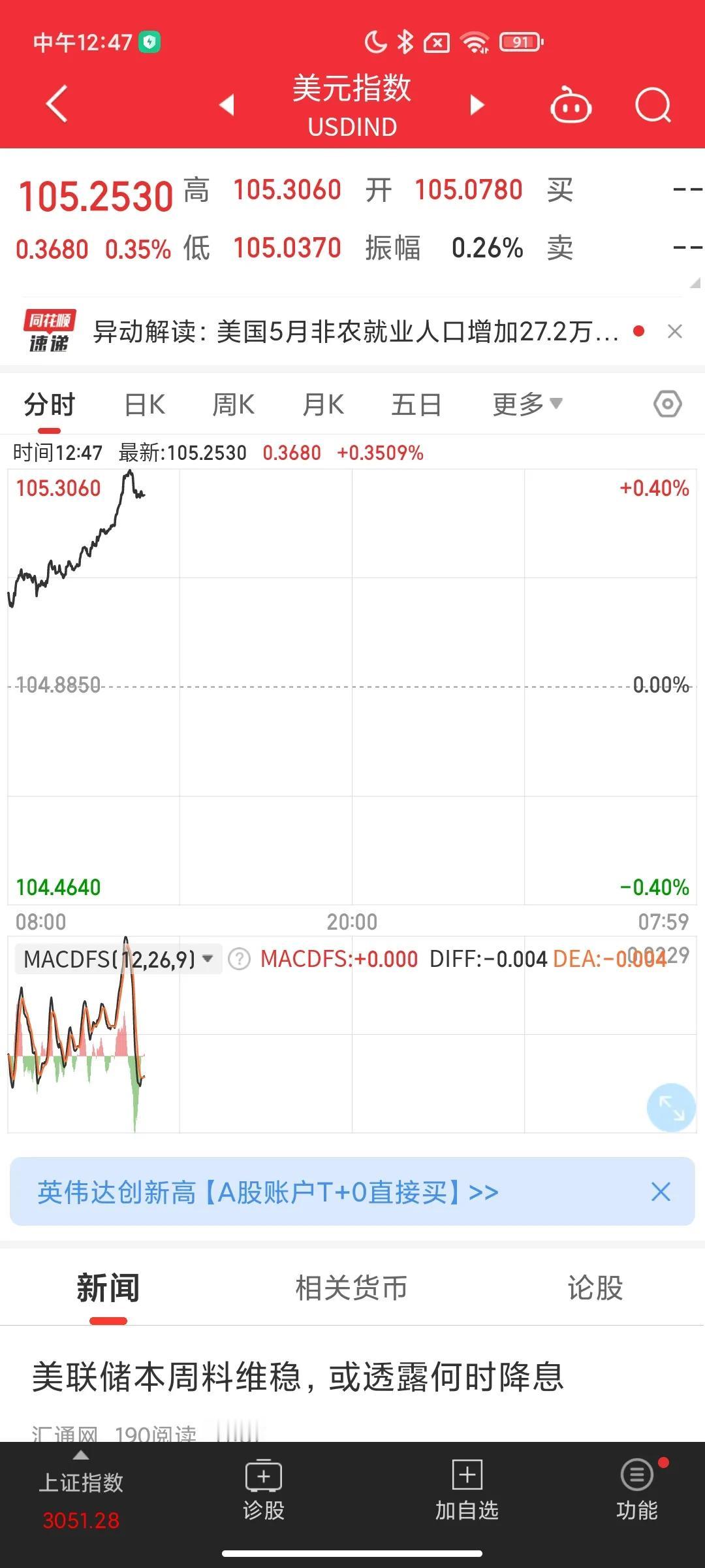 美元指数的走势现在也是非常尴尬,就如现在尴尬的美联储也不知道该加息还是该降息了[抠鼻]继续加息吧却收割不到东方大国,自己的盾美债都快还不上利息了,降息吧美元最早锚定的黄金已经被央妈连买18个月进入高位区,后来锚定的石油无论是大毛和中东,随着美武力值的下降越来越难以控制。也没啥好的资产去买[思考]美再持续下去这次金融暗战就该输了。回过头来早点去收割一下日本才是