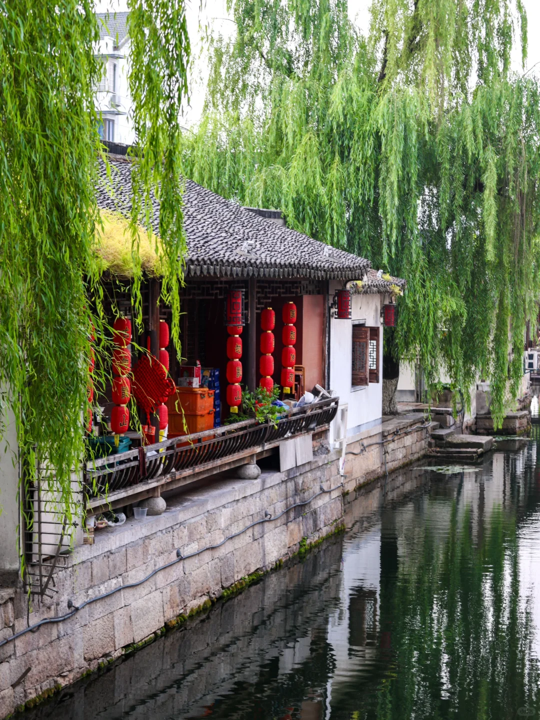 一种岁月静好的感觉,小河潺潺,沿岸柳树依依,睡莲开的正好,静谧美好