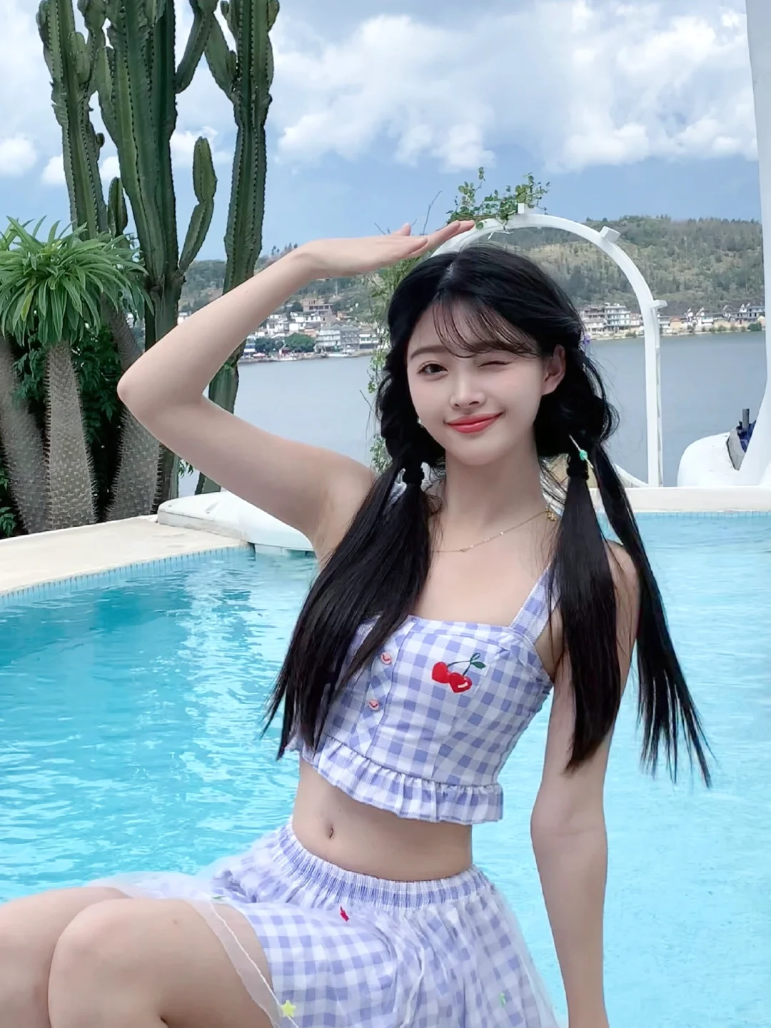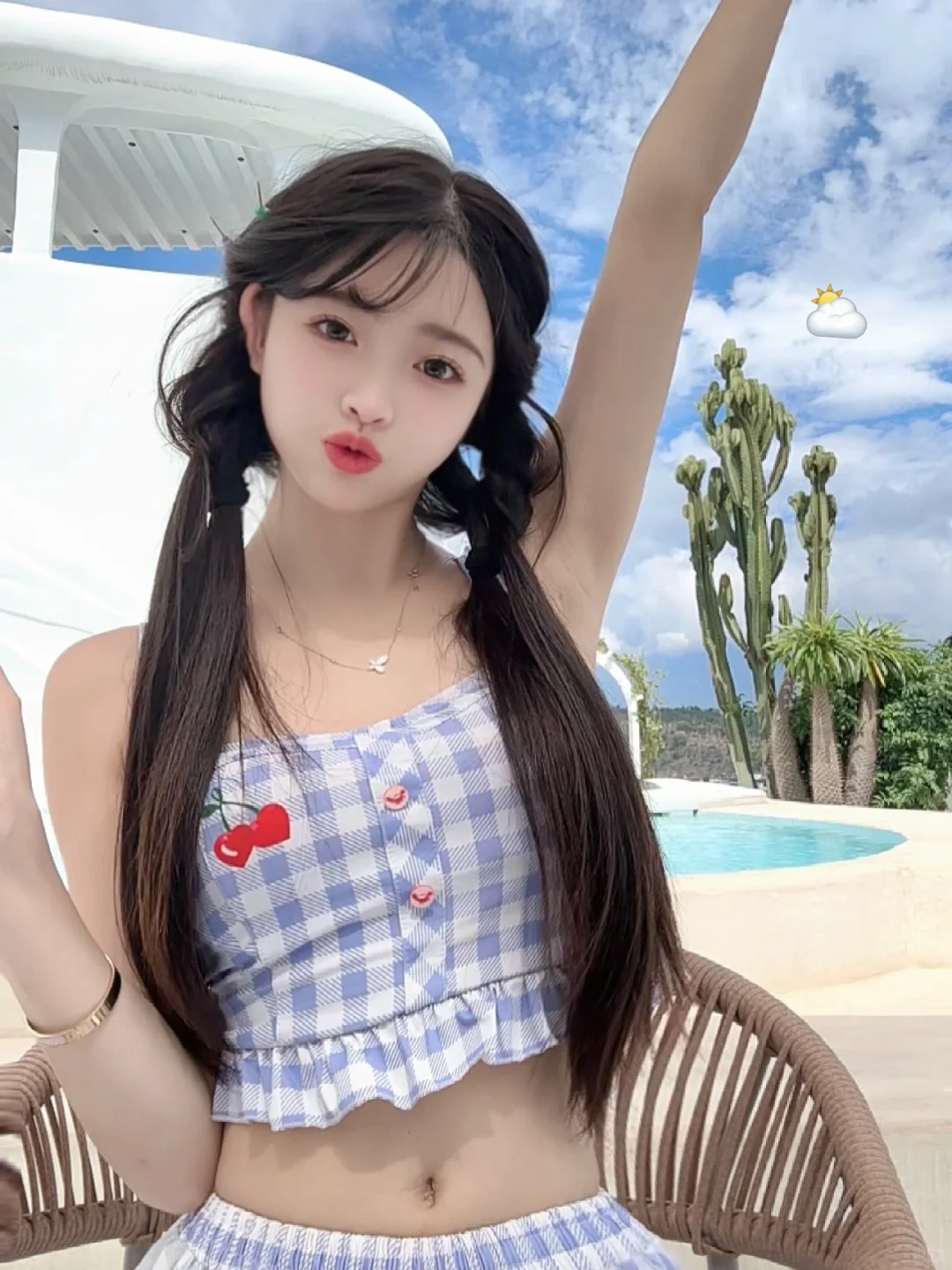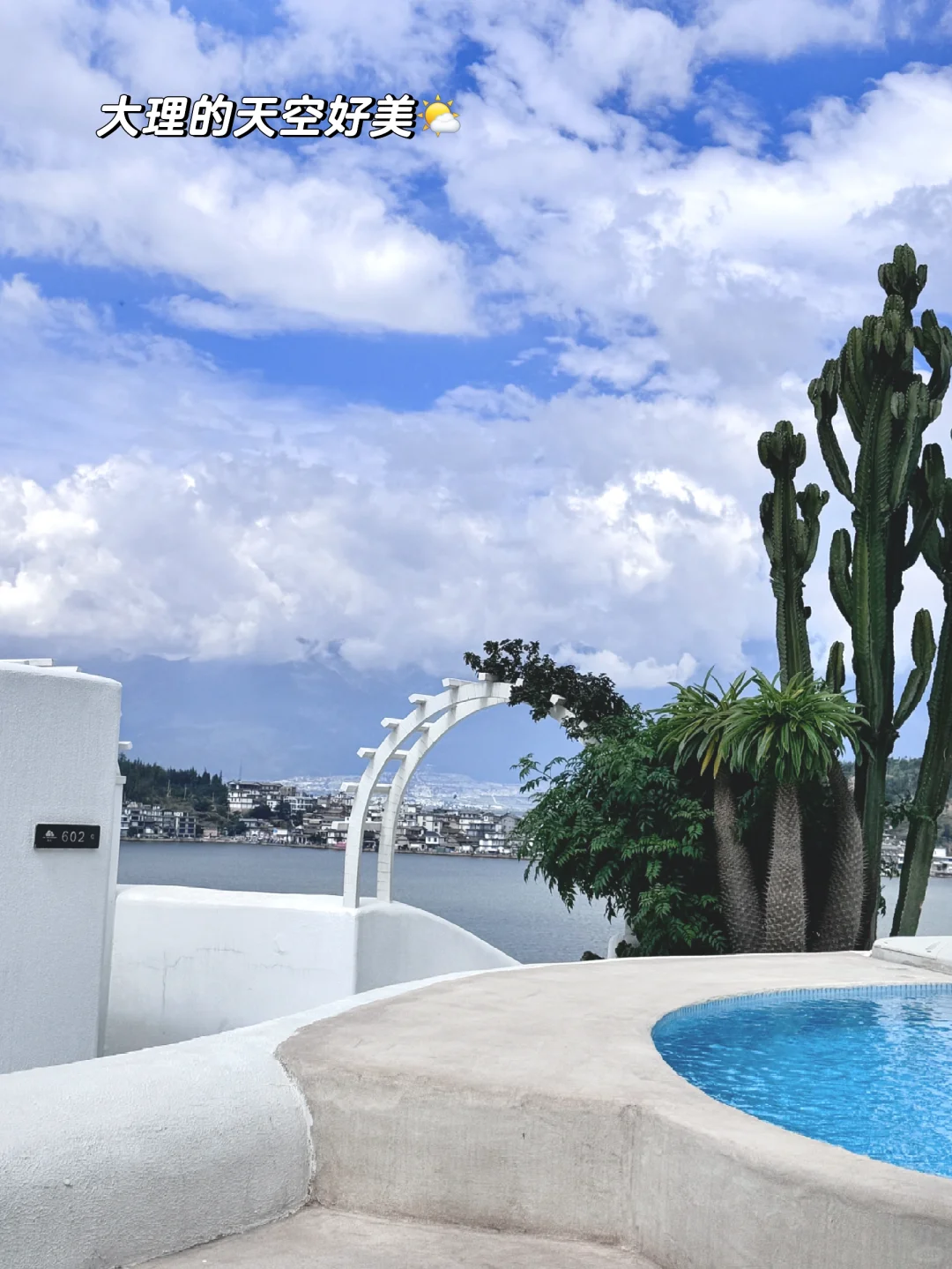 蓝天白云的大理⛅️ 从衣柜里翻出很久之前买的樱桃泳衣!🍒 颜色好夏天喔~💦 🗳️