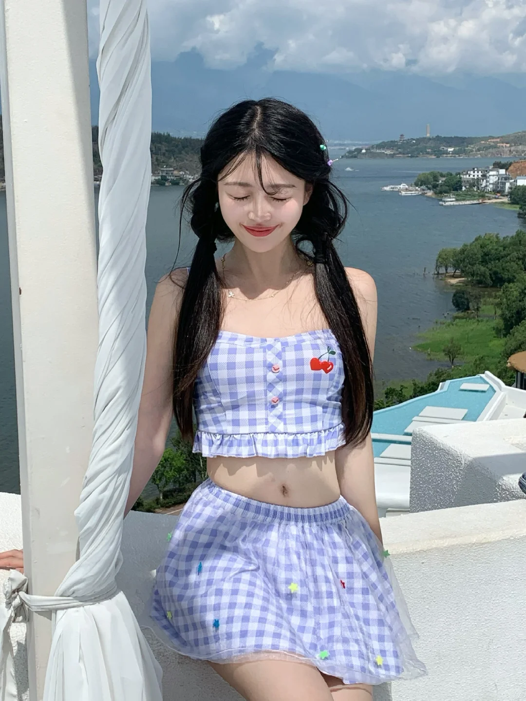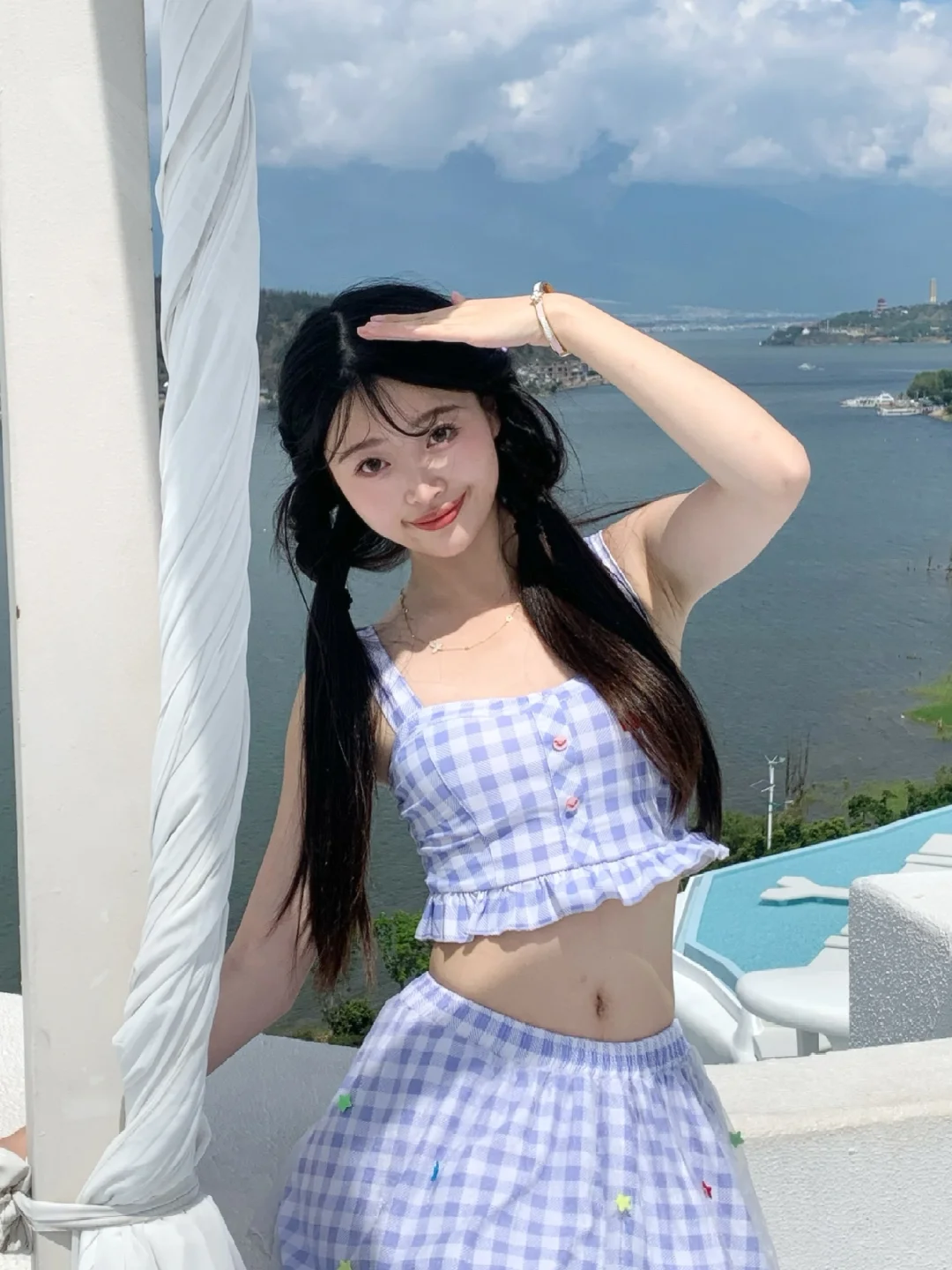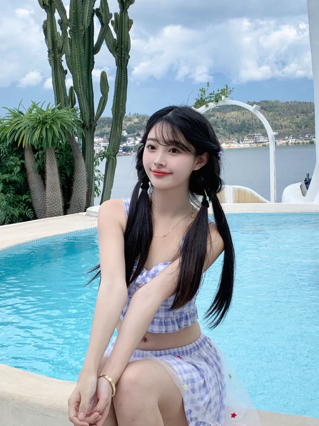 蓝天白云的大理⛅️ 从衣柜里翻出很久之前买的樱桃泳衣!🍒 颜色好夏天喔~💦 🗳️