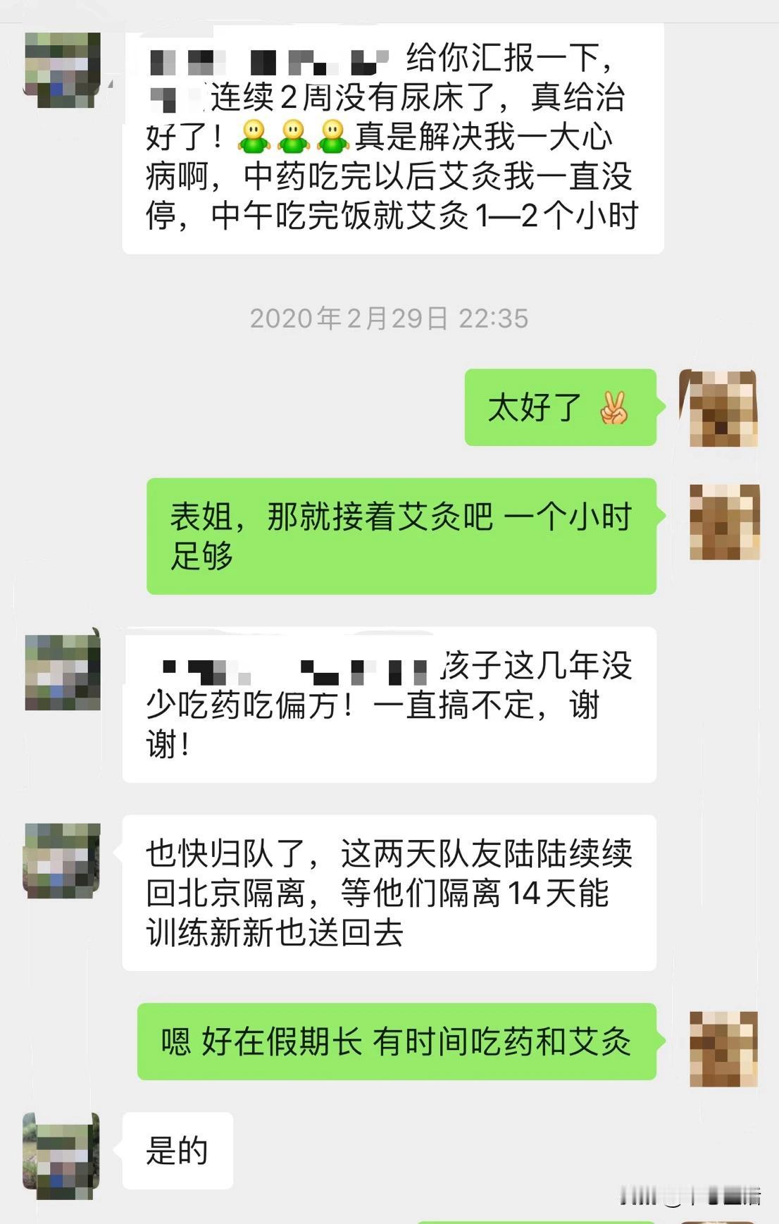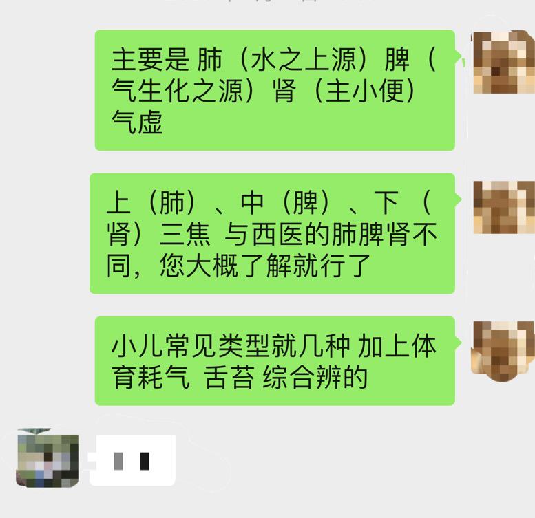 分享一例少儿遗尿治案: 13岁男孩,尿床。孩子妈妈说遗传,先前吃过一些药和偏方,没有什么效果。随着年龄增长,也没有缓解的迹象,还是一样天天尿床。这个孩子很厉害,进了某运动项目的国家队。运动员训练安排的很满,请假不方便,在一个也因为经常参加比赛,担心药物影响兴奋剂尿检,就没有去治疗。但是,孩子经常参加比赛,住酒店,尿床也确实愁人,于是治疗才又才提上日程。好容易等到几天假,到了儿研所,结果不凑巧,说他们每周二下午才肾内科遗尿门诊,没看成。17号,给我发微信,说孩子下周放假了,过年假期稍长一点,也不是比赛季,想喝中药试试。我确实和孩子妈妈说过,遗尿中医比较擅长。孩子没有任何其他症状,要了一张舌象照片过来。 R1:中药 炙麻黄3g 生黄芪9g 太子参10g 淮山药20g 炒白术10g 茯苓10g 肉桂3g 益智仁9g 桑螵蛸10g 分心木9g 桑叶15g 石菖蒲3g 7付,水煎服,日一剂,分早晚两次服用。 R2:艾灸 关元、气海、足三里 嘱:最好姜灸,每日中午艾灸一次,不少于1h。 分析病因病机,小孩一定要考虑先后天因素-脾、肾:一是先天遗传因素,肾气是否有不足?二是后天之本,脾是否健运?另外,这个孩子比较特殊的是,运动强度大,有没有耗伤气?肺气有没有受累。从照片看,舌质略嫩,是胖的,齿痕也很明显。肺脾肾同治,兼治心主。 ▲肺(上焦如雾)—水之上源,主通调水道 用炙麻黄,通阳;桑叶清中有补,以监制麻黄之温。 ▲脾(中焦如沤)—后天之本,气生化之源 生黄芪、太子参、淮山药、炒白术、茯苓,补气健脾。 ▲肾(下焦如渎)—先天之本,主司二便,与膀胱相表里 用肉桂、益智仁、桑螵蛸、分心木,益肾缩尿。 ❤心——心藏神,为五脏之主 用石菖蒲开窍醒神。睡中遗尿,神不使。 艾灸,取督脉的关元、气海,培元固本,足三里健脾。没有取肾俞穴。 药本想开了14付,但考虑到诊病未见到孩子先观察一下效果,再者孩子的假期不过9天。后来,没有消息……猜测或许是没有吃药和艾灸?理解家长的顾虑,中医没有摸脉,看了舌苔,就开了方子,靠不靠谱。实际上,望、闻、问、切,有些时候,确实脉诊不是必须的,没必要跑一趟,耽误服药时间。我也简单做了病机分析发给孩子妈妈,希望能得到理解。或者是没有效果?也或者是新冠肺炎暴发,去开药不方便了? 直到过儿一段时间,收到消息,才知道,病好了。因为新冠肺炎疫情,假期延长了,有了治疗时间。不过,实际上药只吃了7付,后面确实不方便出门开药,也就没再问我,倒是一直在坚持艾灸——千叮咛万嘱咐,信,是疗效的第一步。 ★想说的是,艾灸的力量不可低估,大半的功劳。 孩子妈妈说,两周多的时间没有尿床了——在家里也是有训练强度的。 归队前,嘱补吃了一个7付,主要是考虑运动强度的加大。药量略有调整。 一个小插曲:因新冠肺炎,很多门诊都没开诊,我一周半天的门诊也是久违了。嘱去同仁堂拿药,2g炙麻黄,却不给开。麻黄,在新冠肺炎中功劳不小。不过,本方用麻黄并不是用来发散风寒和治疗咳嗽的。 于是,开了小鹿帮忙,开出了药方。