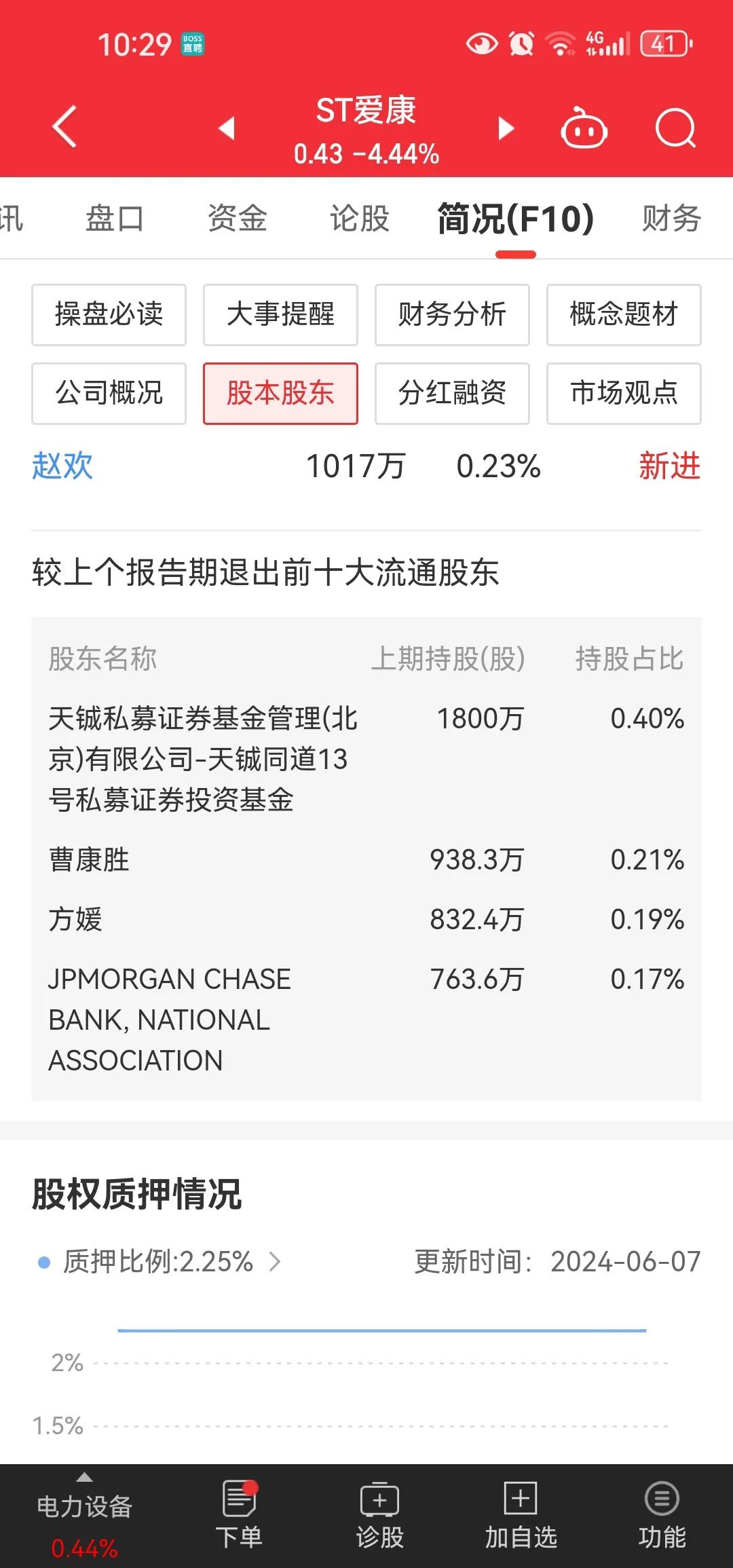 28个跌停锁定退市让逾27万股东“梦碎”ST爱康让里面的投资者几乎连一点割肉出来的机会都没给[抠鼻]可在23年年报刚进了一家JPMORGAN CHASE BANK, NATIONAL ASSOCIATION。24年一季报出来它就不在了[抠鼻]这只神秘的qf2就是鼎鼎大名的摩根大通。要知道小摩直接持有的a股非常少[抠鼻]能进入它的投资名单又神秘的在暴雷前离场难道就为了一月那波小涨吗?