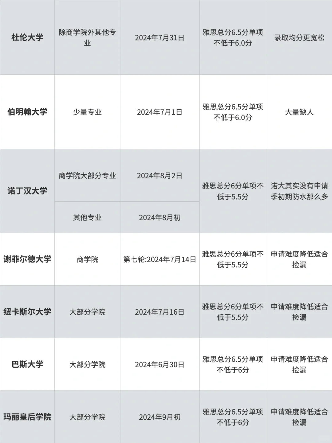 这里给大家整理了 24fall 英国部分可捡漏的专业信息: