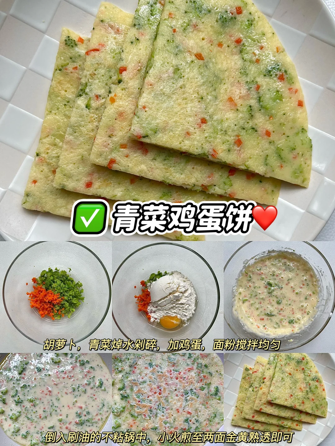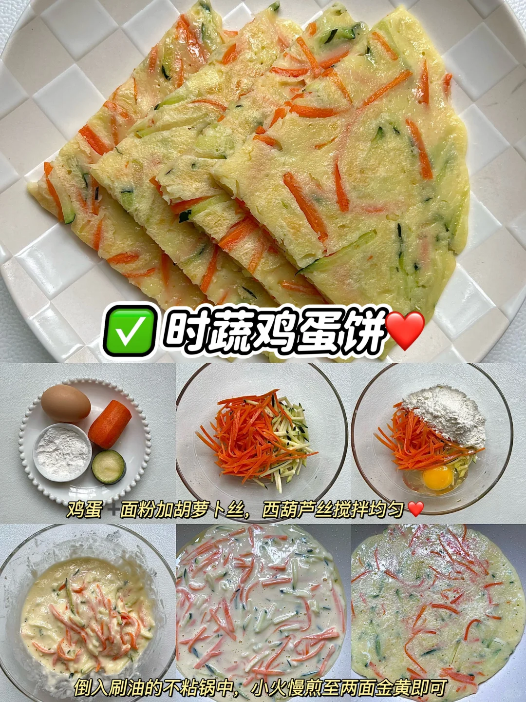 早餐不知道吃什么的,就赶紧安排一份早餐鸡蛋饼吧,鸡蛋➕蔬菜➕面粉的结合,营养美味,简单好做,5分钟搞定营养早餐,大人,宝宝都非常爱吃~妈妈们赶紧一起做起来吧