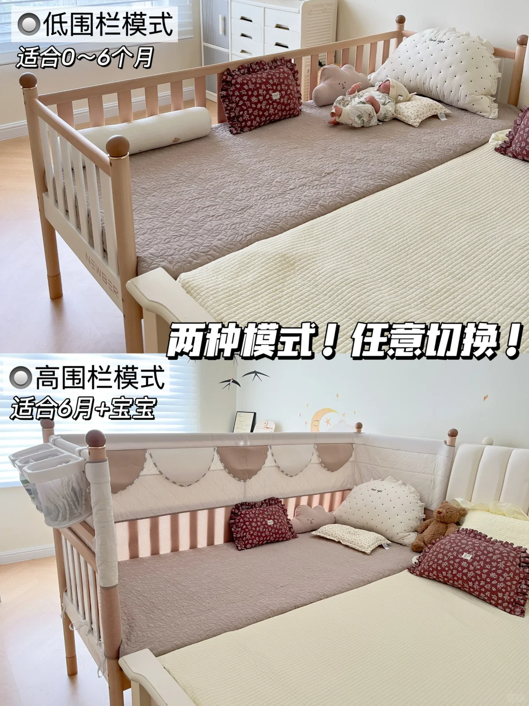 👶🏻0~6个月:使用低护栏,照顾宝宝,抱宝宝上下床方便