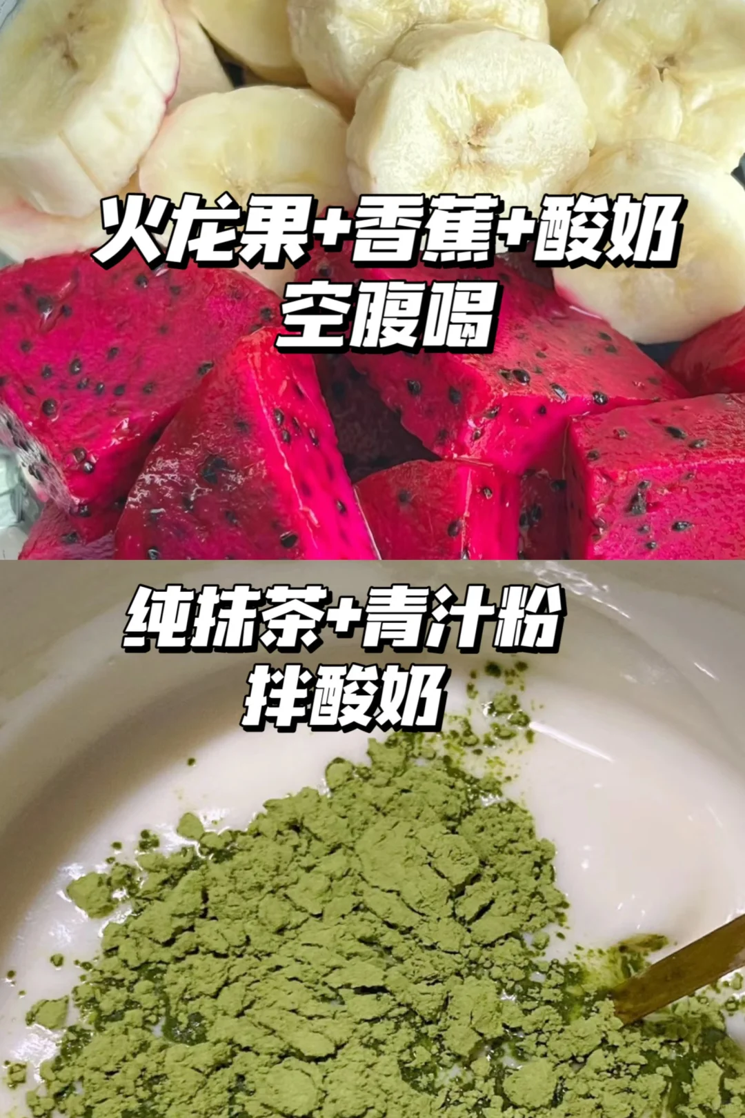 🍵抹茶粉+青汁粉+酸奶!空腹喝对我来说也有效果!但抹茶粉的量一定要多!酸奶尽量选择无蔗糖的
