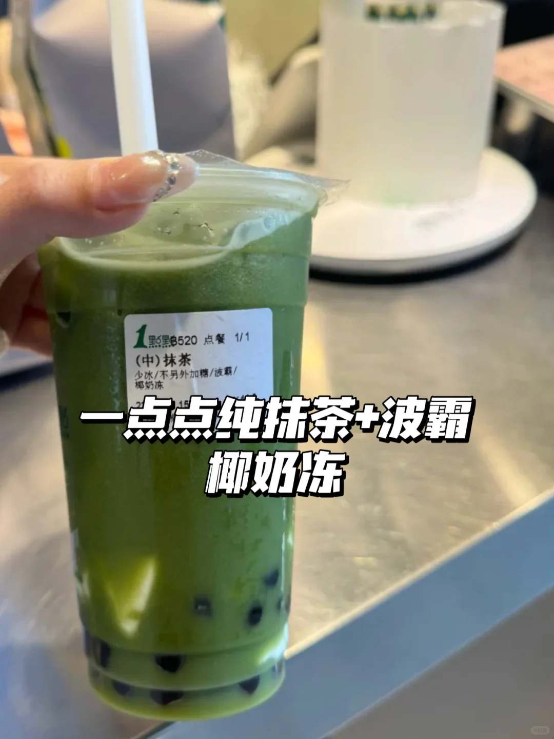 🥤一点点的纯抹茶!不加糖!加波霸+椰奶冻!低卡有效果!但要空腹!