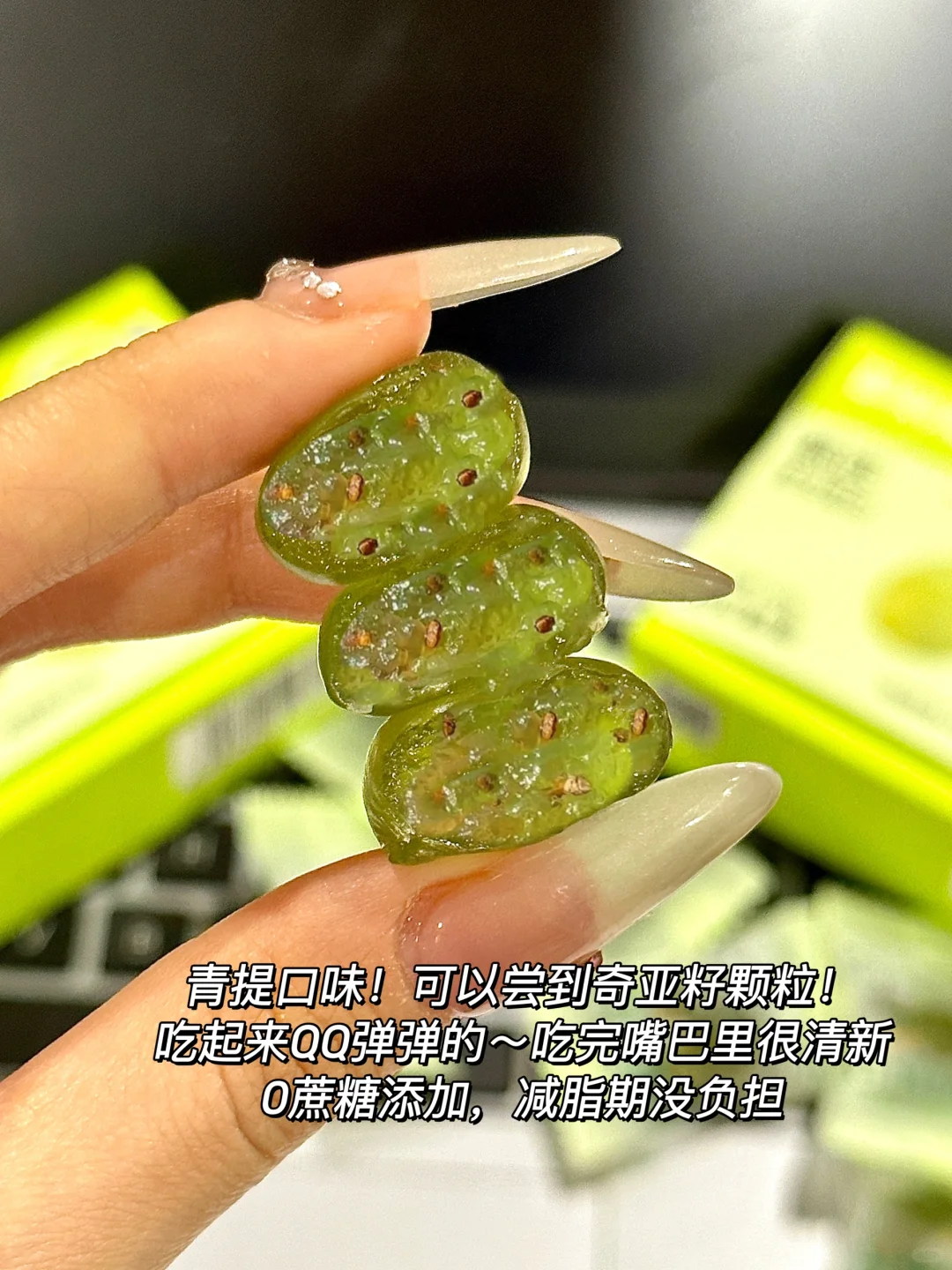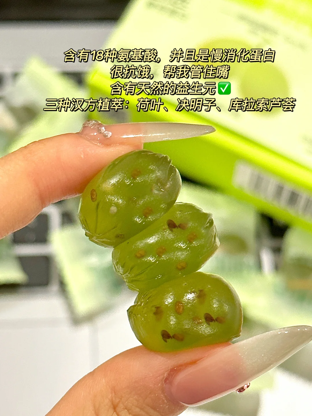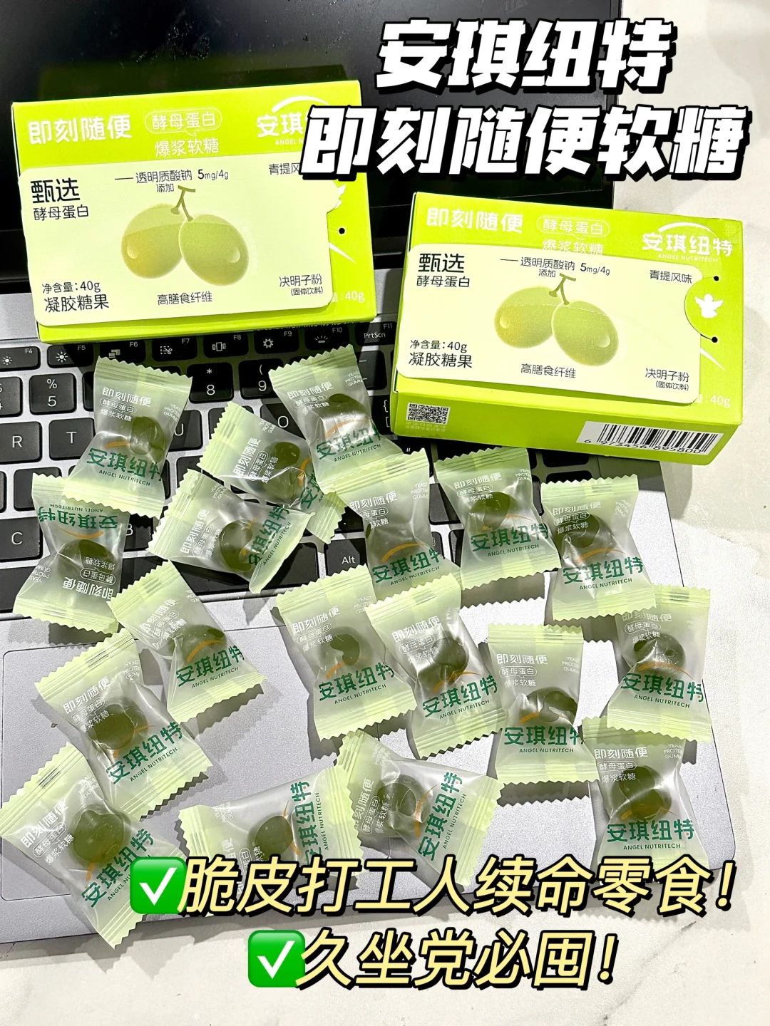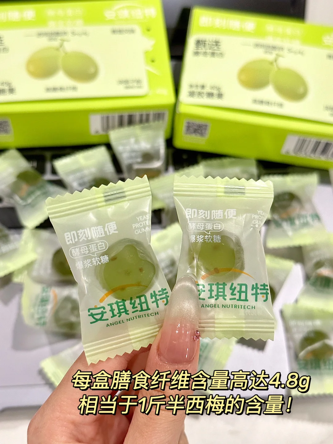 🍬安琪纽特即刻随便软糖!这个还是我同事推荐给我的!说这个现在是她一直常备的大餐救星!口感是QQ弹弹的青提味👅巨好吃!0蔗糖的吃了也没负担!配料表没什么乱七八糟的添加,成分很温和,专利益生元+3味汉方精粹,可以帮助改善便秘体质,里面还有高膳食纤维+慢消化蛋白!可以延长饱腹感~