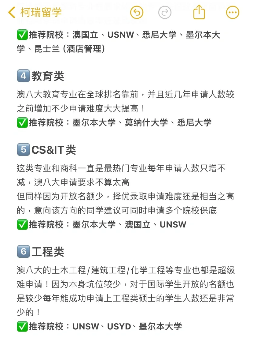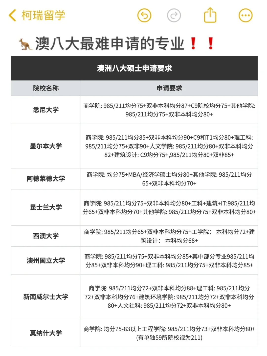 📈上面为大家详细整理了澳八大各院校的录取率、国际生录取人数占比、最难申请专业、推荐院校以及学费等信息,宝子们可以自行对照哦😉。