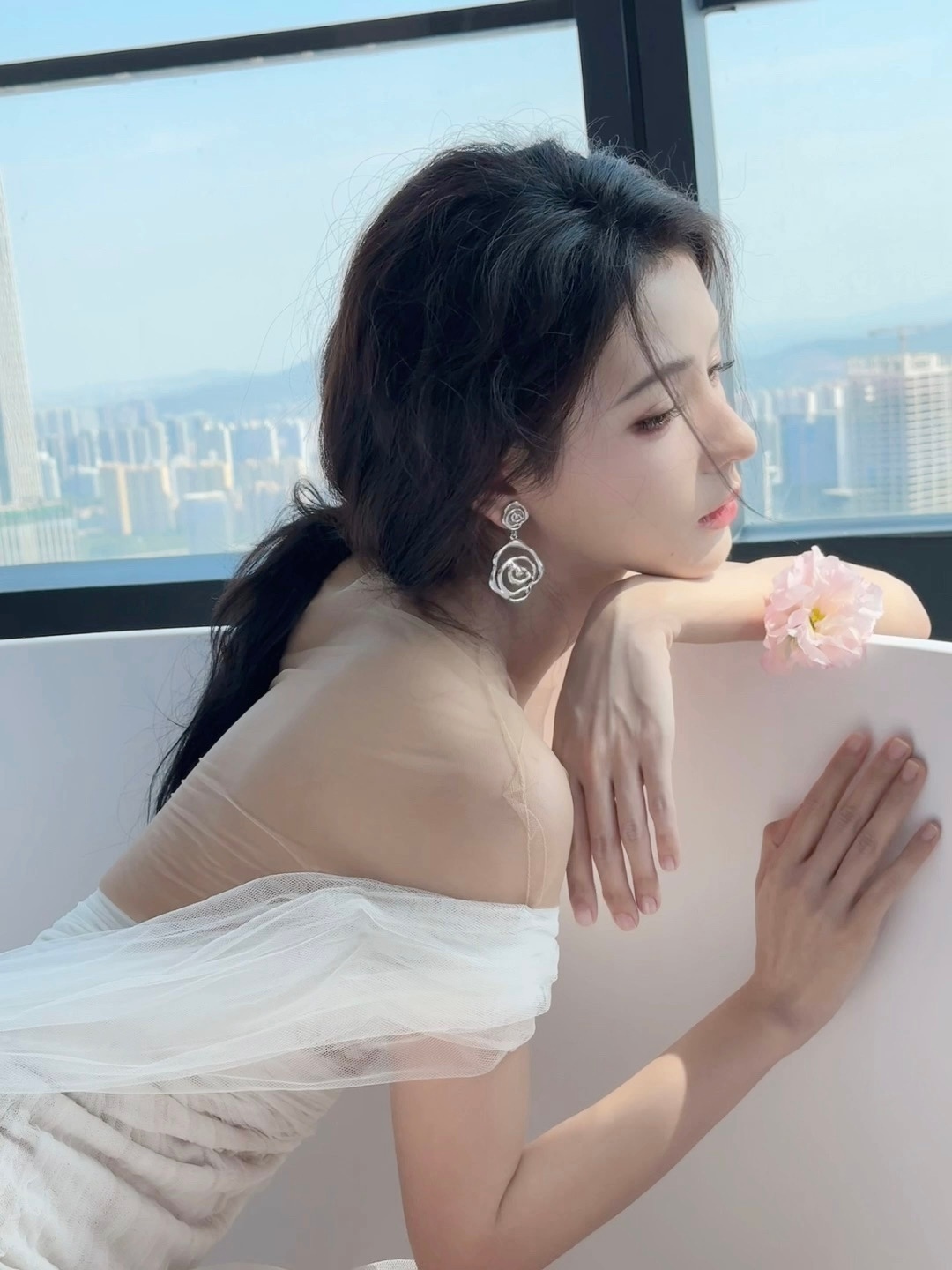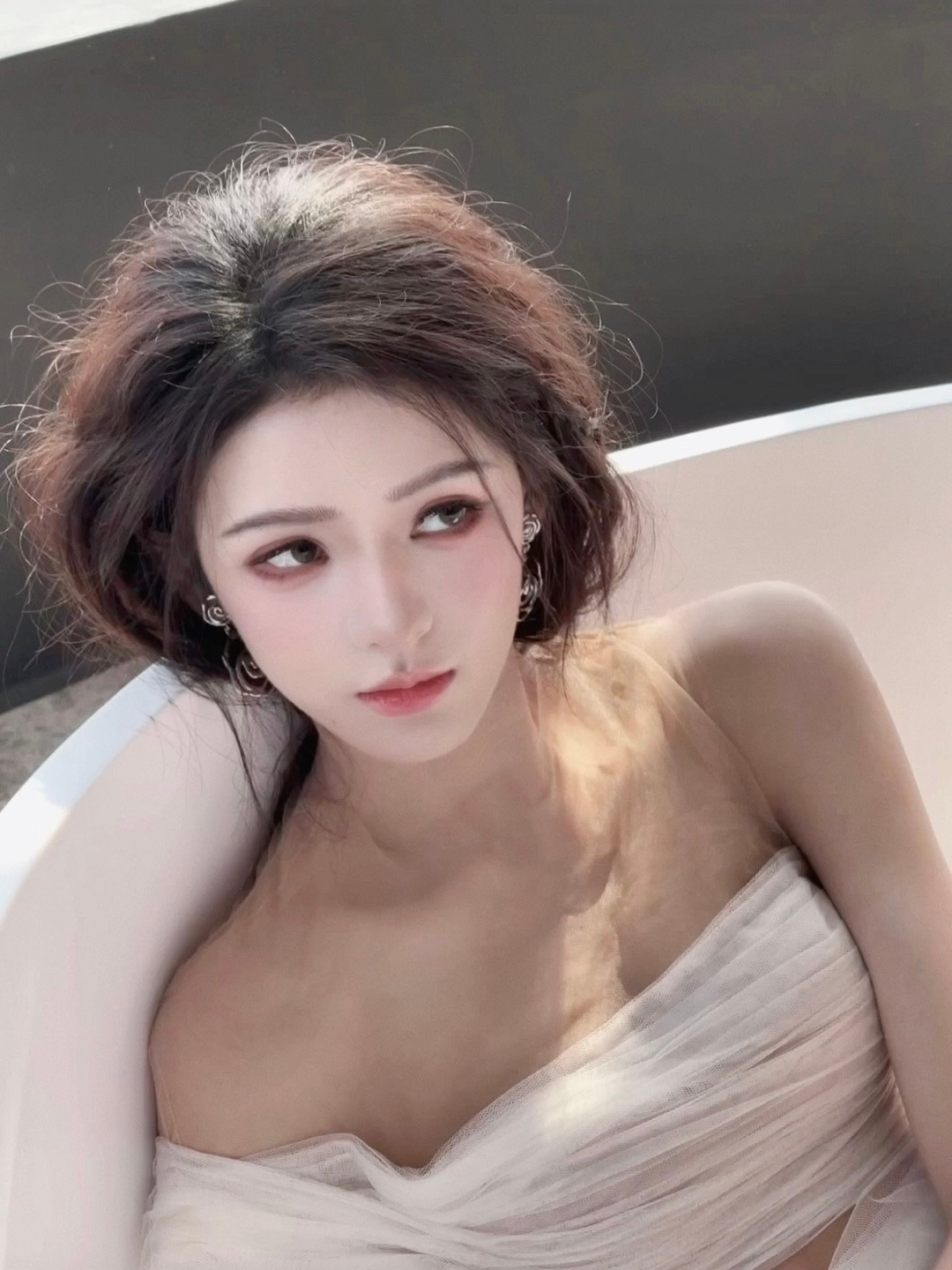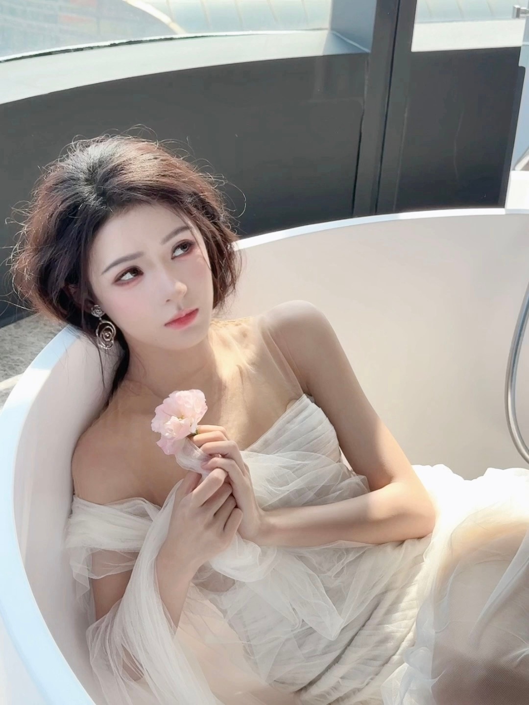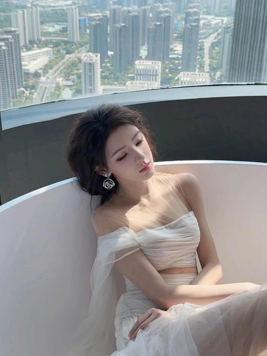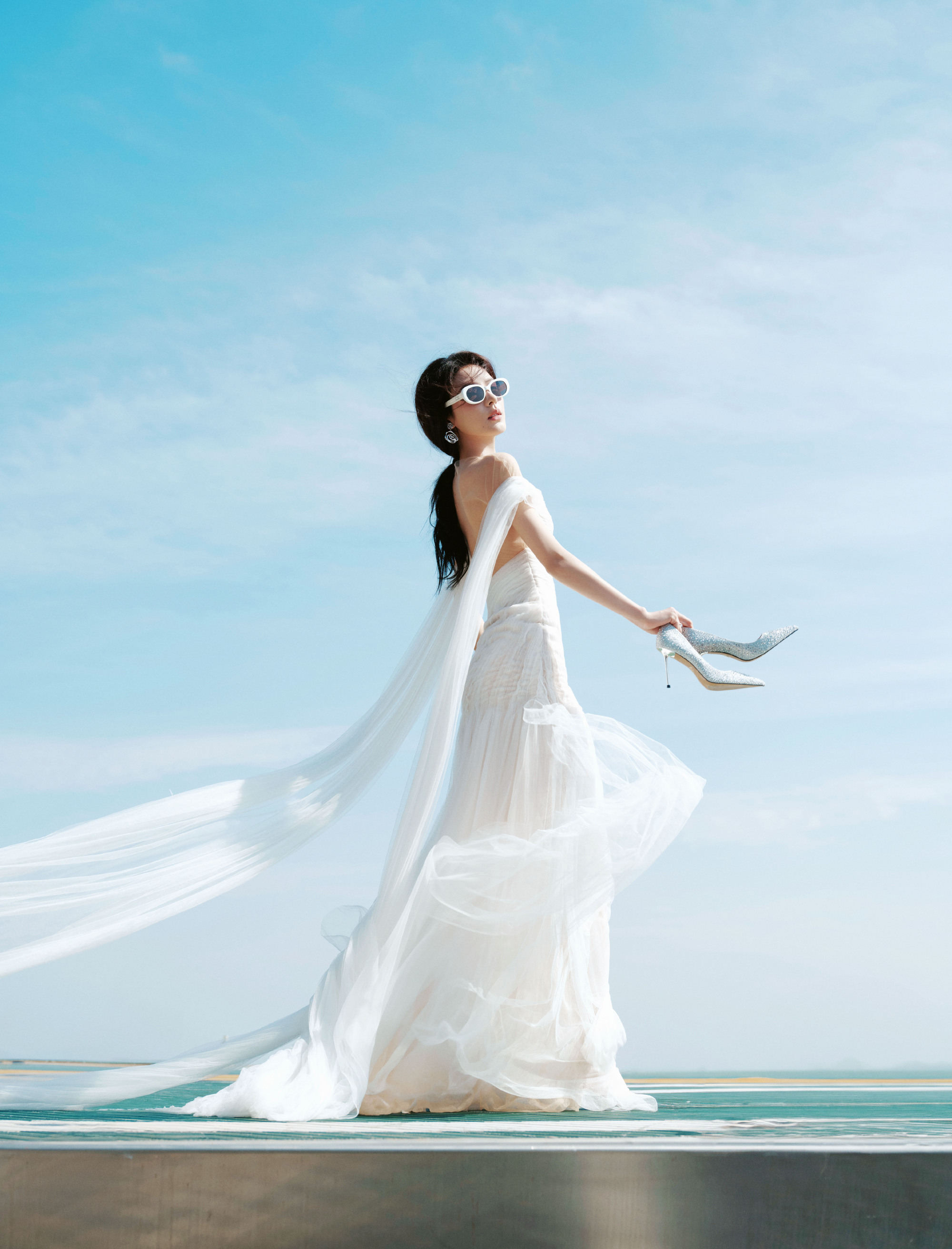 #张予曦薄纱裸背#今日活动造型,纯白色薄纱裸背裙好仙气,在阳光下显得更仙女了!