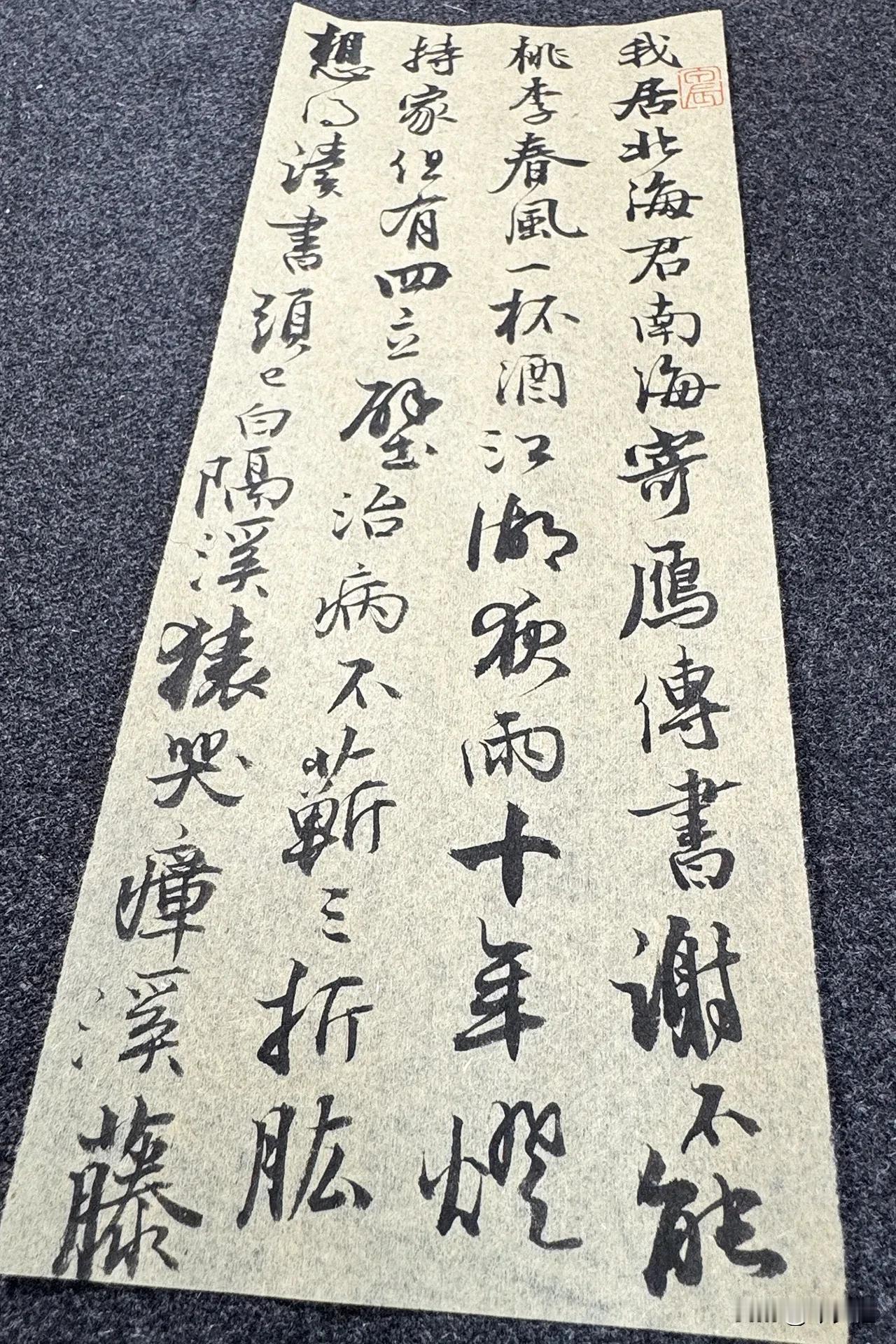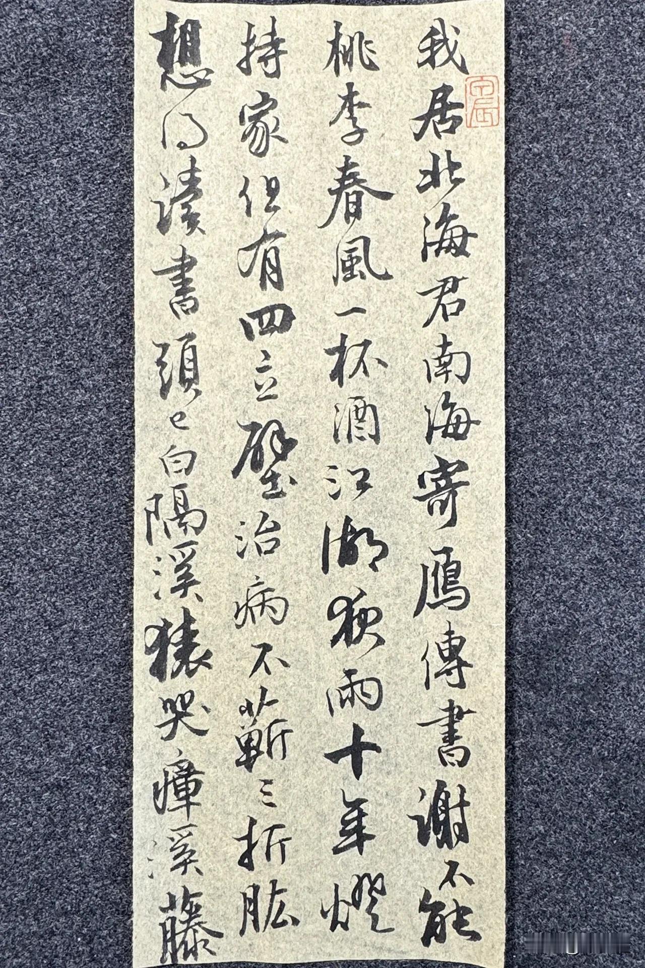 今夕社小行书,黄庭坚《寄黄几复》静态版 我居北海君南海,寄雁传书谢不能。 桃李春风一杯酒,江湖夜雨十年灯。 持家但有四立壁,治病不蕲三折肱。 想得读书头已白,隔溪猿哭瘴溪藤。 笔:墨社今夕软玉 | 纸:墨社今夕黄毛边 | 墨:墨社今夕轻胶中浓墨液 #行书# #书法# #行书毛笔# #毛边纸#