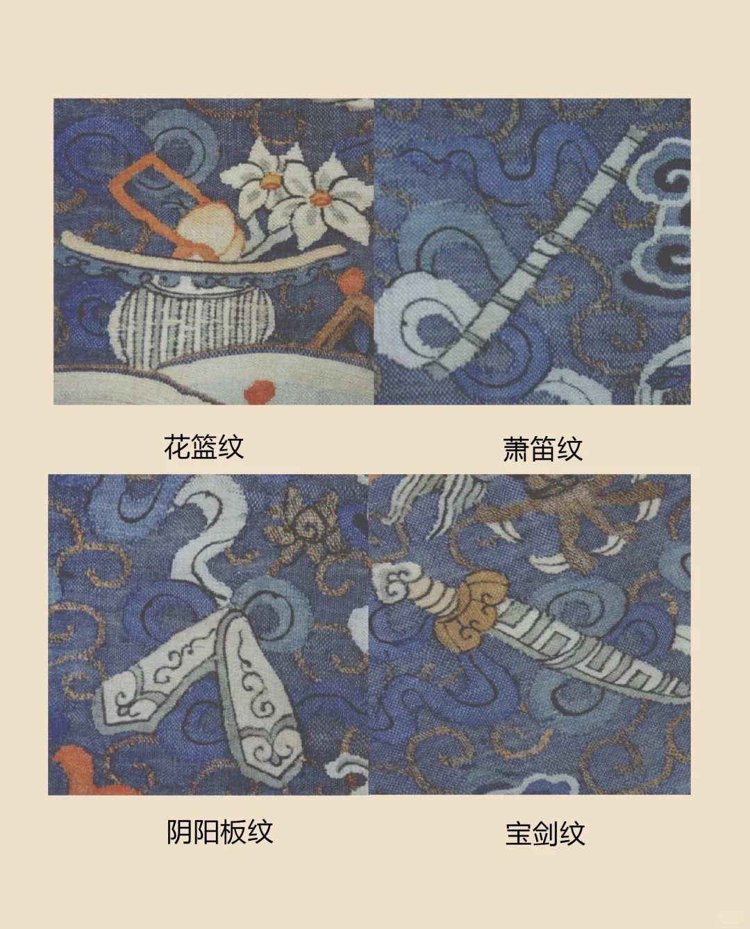 大家好,欢迎来到【某先生】课堂之中国传统纹样篇,今天为大家讲述的是关于《八仙纹》的故事~ - 八仙纹是源于八仙的才华和能力, 所谓“八仙过海,各显神通”。 - 每一种纹样都展现每位神仙的传说和法宝, 同时展现了当时人们对超凡脱俗生活的向往, 八仙纹常被用于祝寿,象征着长寿和吉祥, 同时拥有各显神通、超脱生活的寓意。