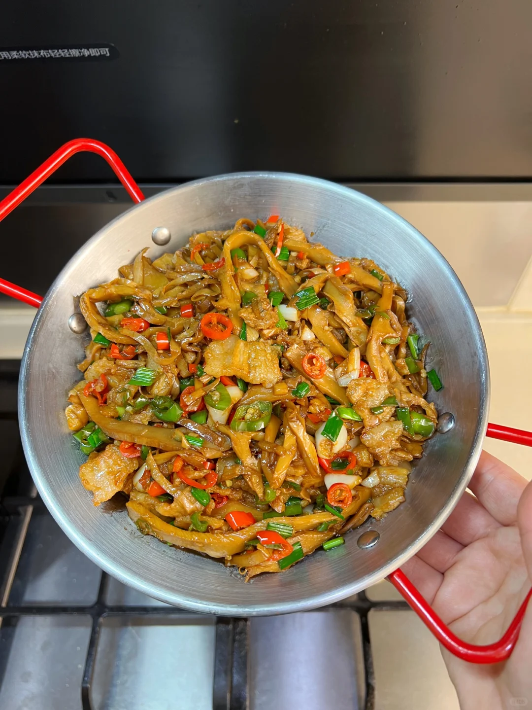 烟笋炒肉,香辣下饭,农家菜的味道,巨好吃😋