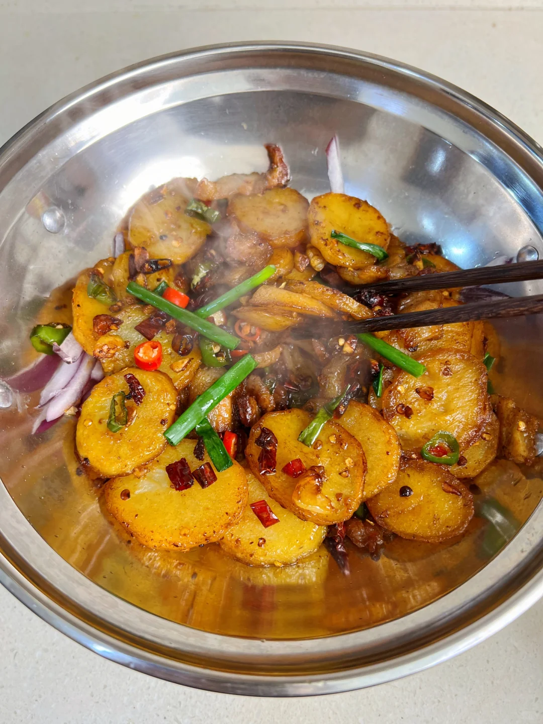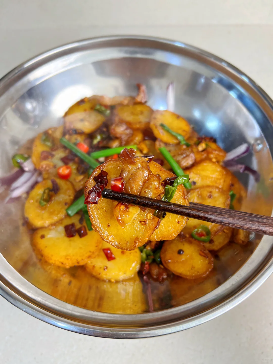 土豆真的是神仙蔬菜呀,怎么做都好吃,用油煎的方式做出来的干锅土豆也是特别香的,喜欢吃土豆的朋友可以试下这个做法[赞R][赞R]